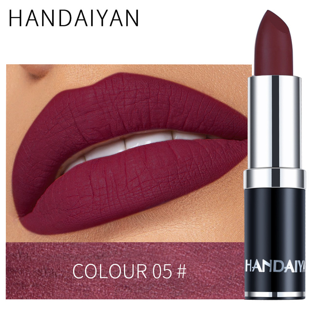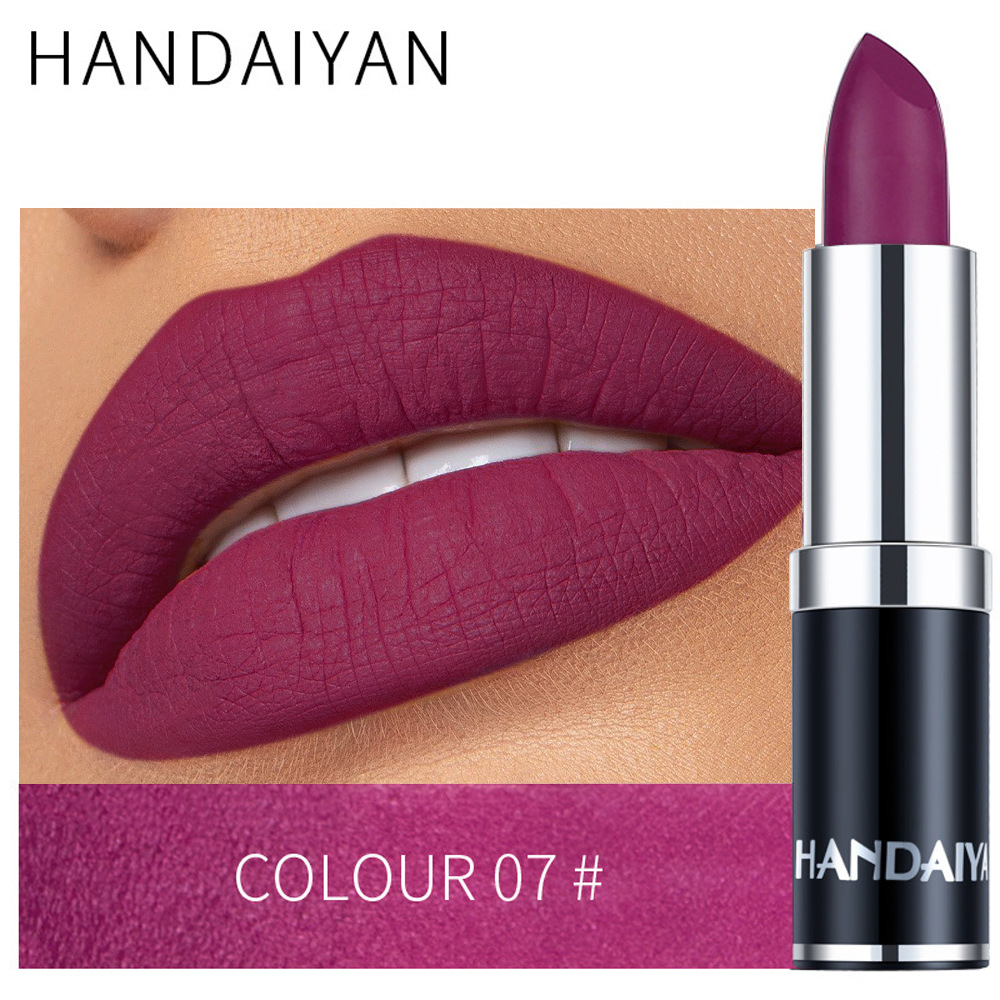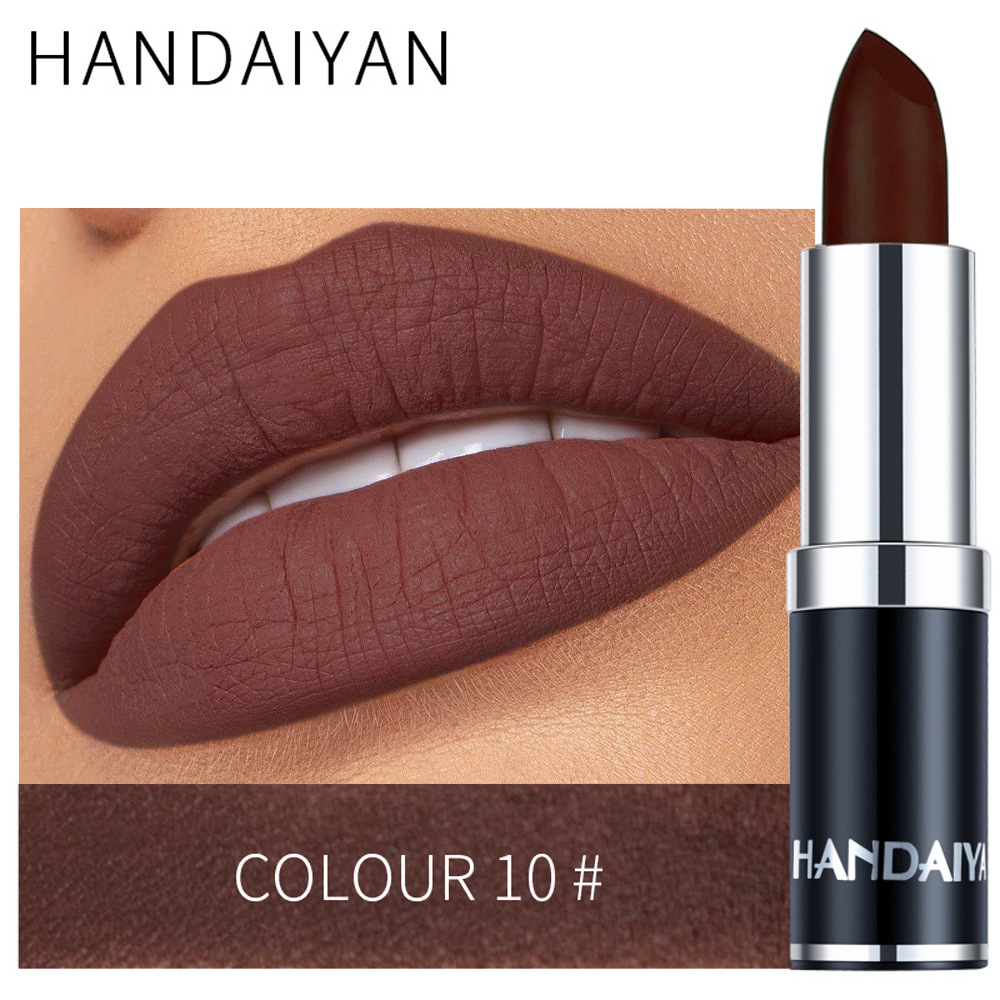 Главная страница > Матовая губная помада Handaiyan, 12 цветов, черная упаковка, стойкая, не оставляет следов на чашке, не выцветает.