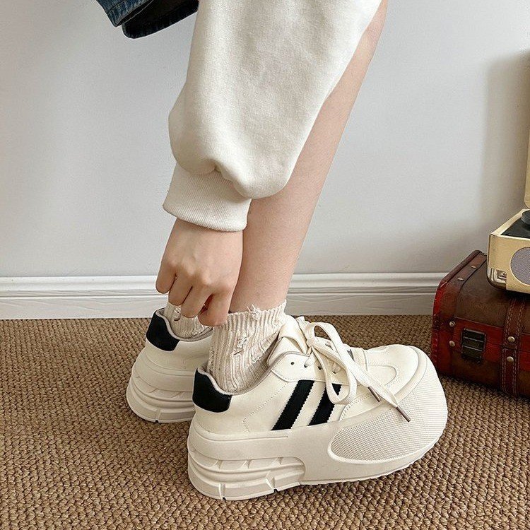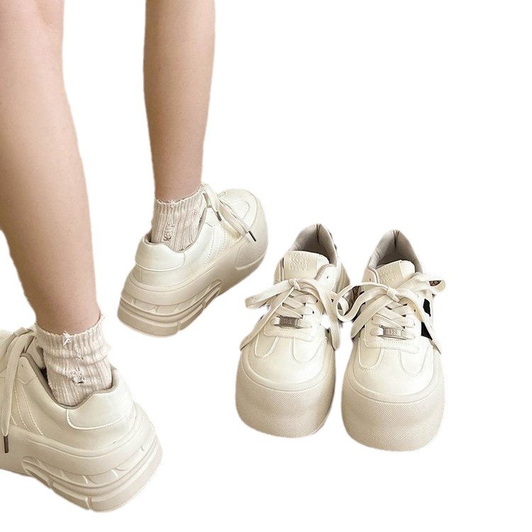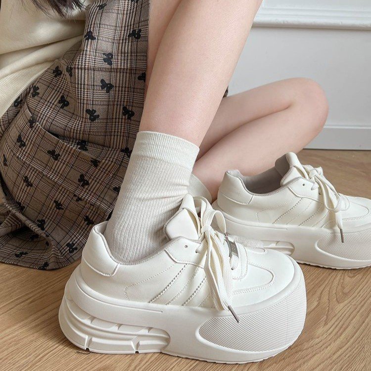 Главная страница > Круглая голова, дикий высокий уровень ретро, увеличенный толстый подошв, маленькие белые туфли для женщин 2024 новая весна