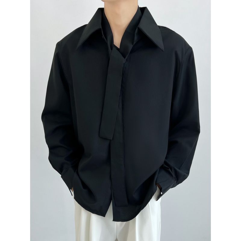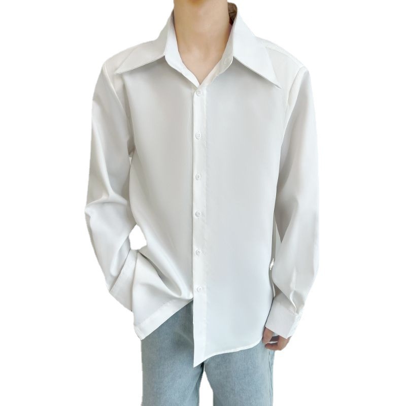 Главная страница > Высококачественная дизайнерская рубашка с галстуком, Мужская свободная модная французская белая рубашка с длинным рукавом и маленьким большим заостренным воротником