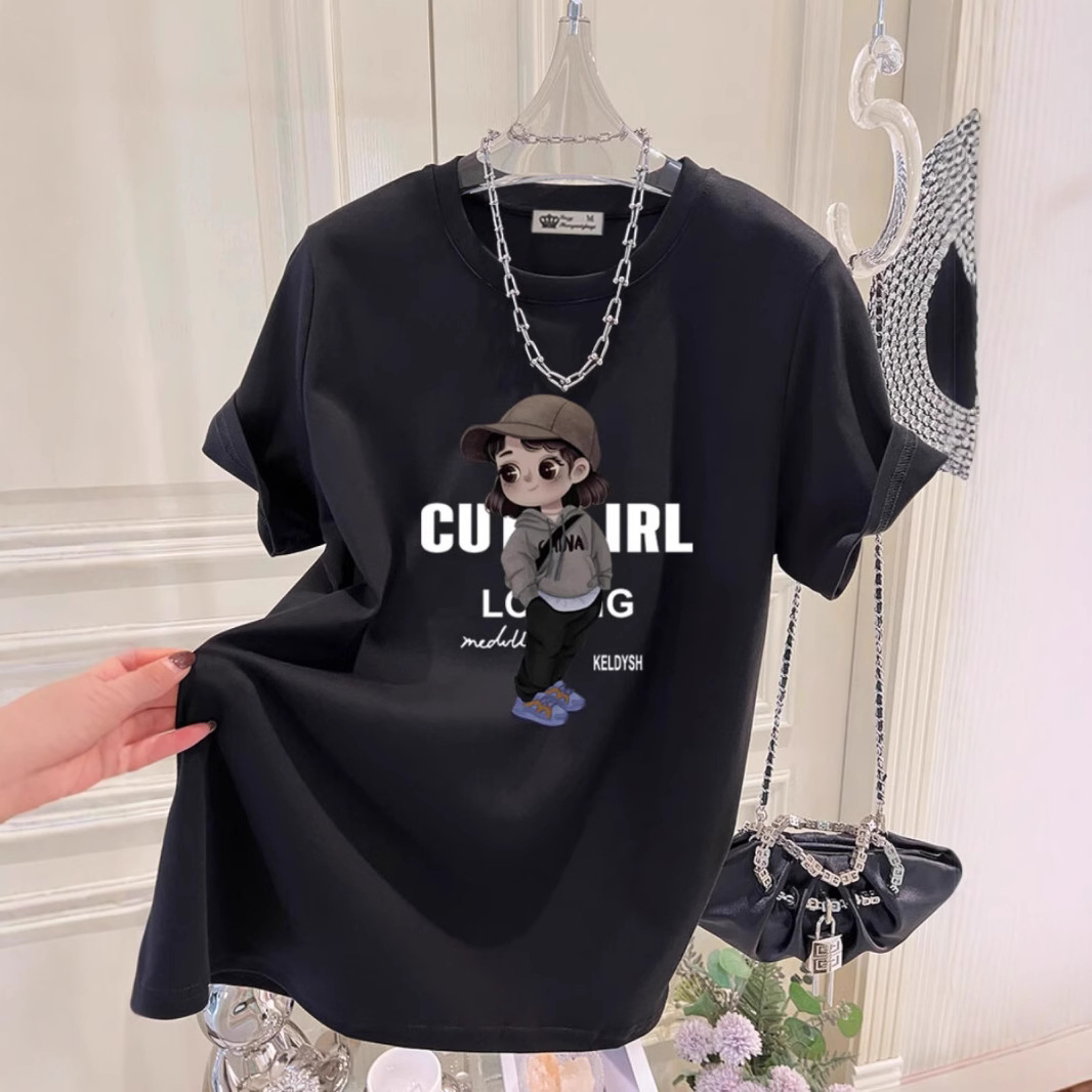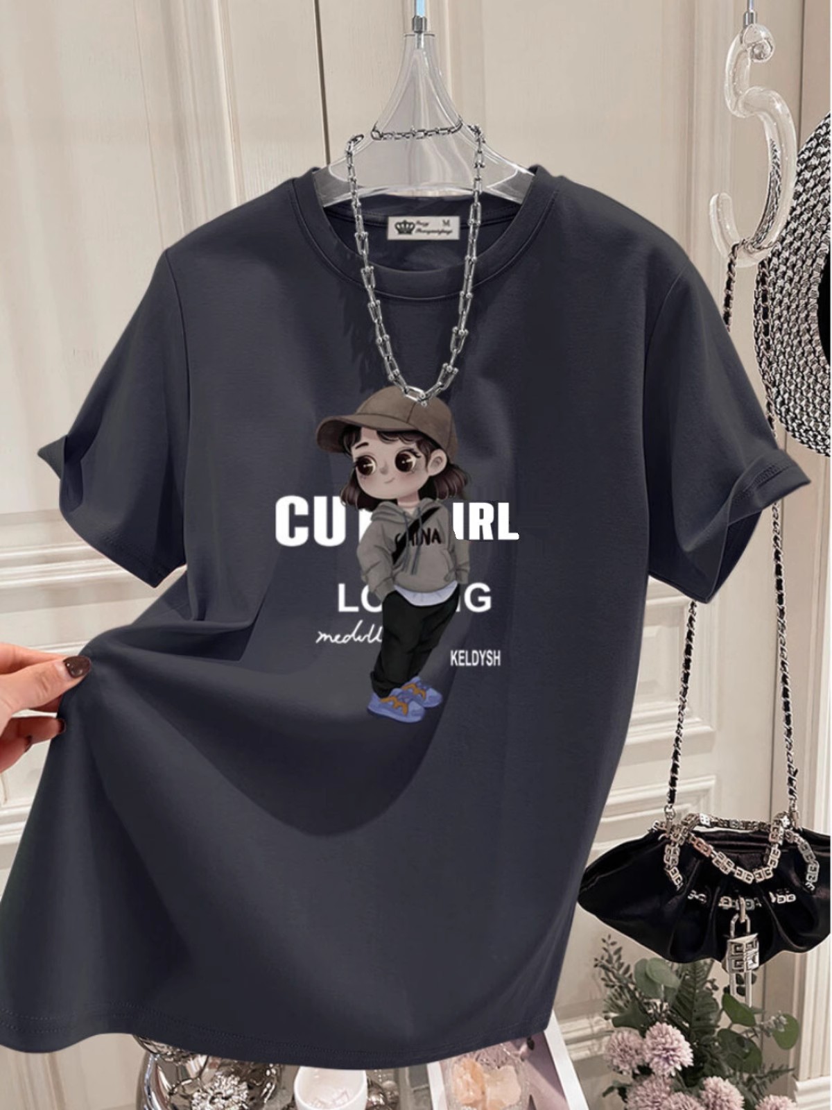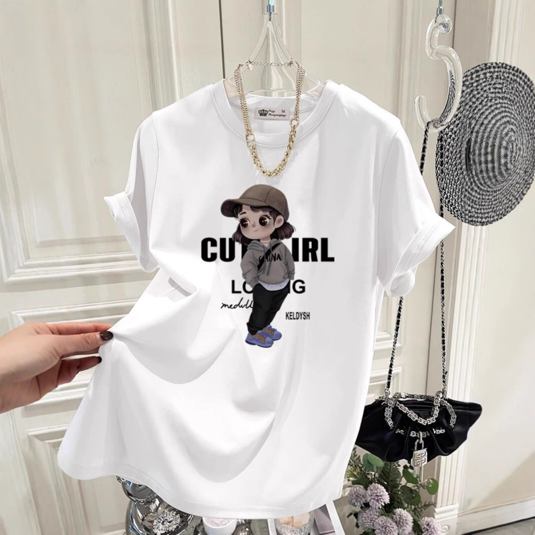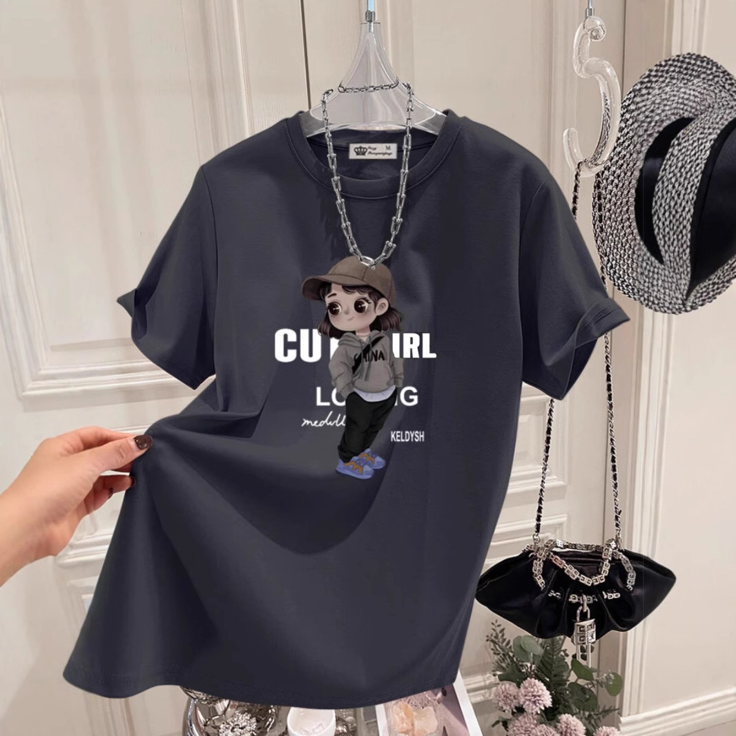 Главная страница > Большая версия с круглым вырезом свободная футболка с короткими рукавами 2025 летний новый корейский принт милая девушка средней и длинной топ