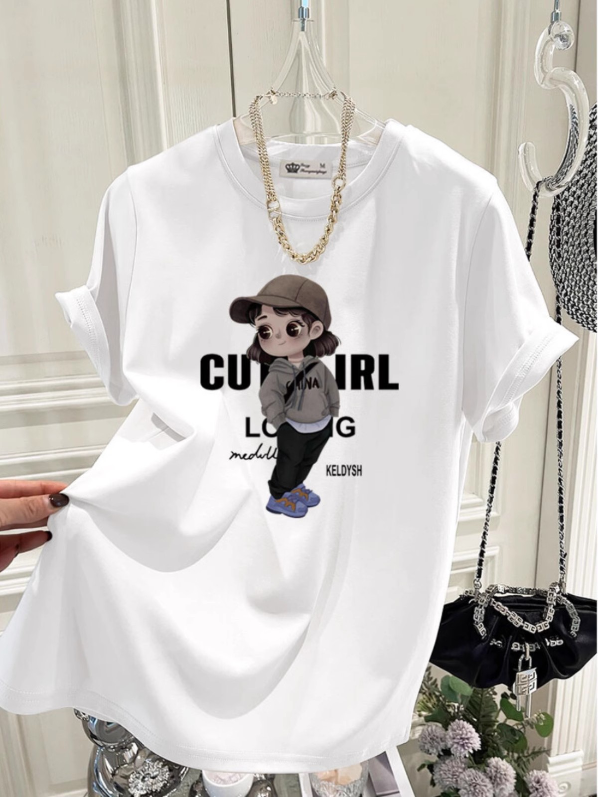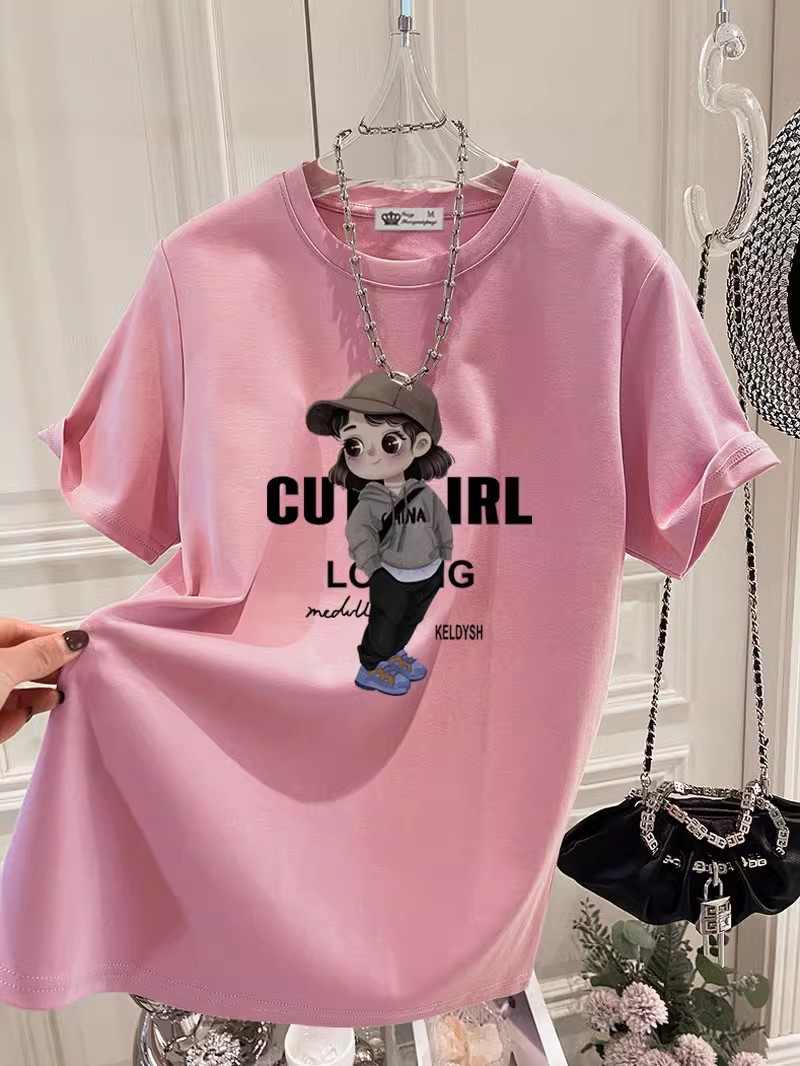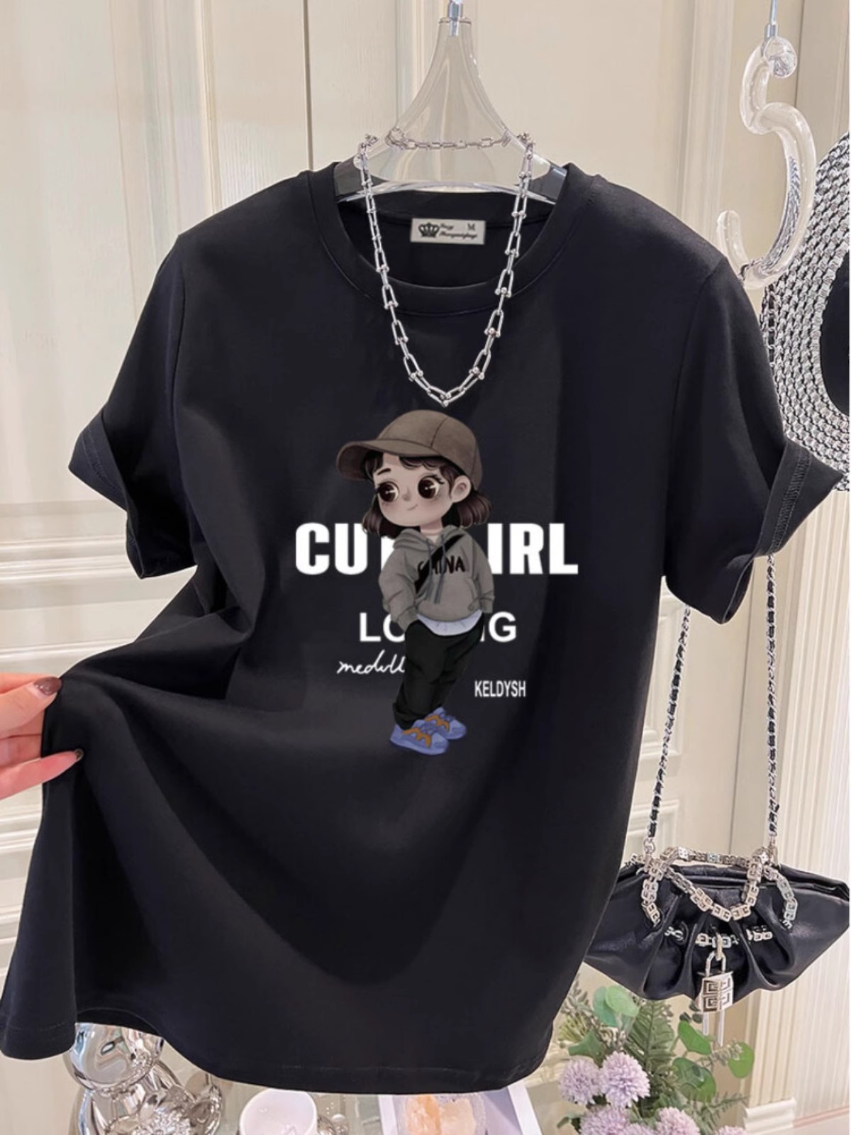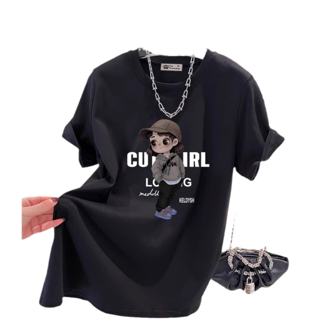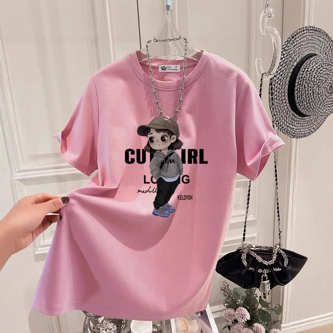 Главная страница > Большая версия с круглым вырезом свободная футболка с короткими рукавами 2025 летний новый корейский принт милая девушка средней и длинной топ