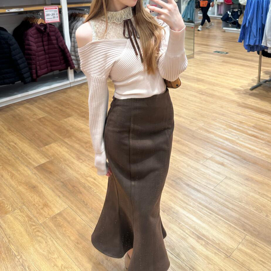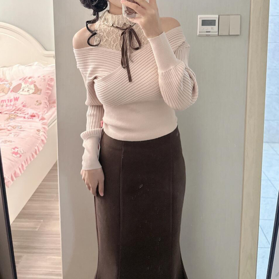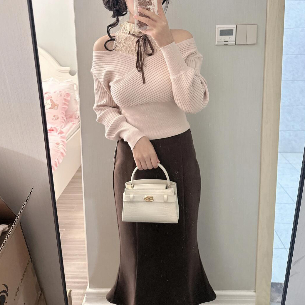 Главная страница > Японский носить поддельные два свитера с открытыми плечами трикотажный топ женский весенний модный темперамент нежный топ женский