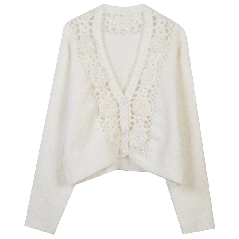 Главная страница > Свитер Осень-Зима Новый женский с V-образным вырезом и длинным рукавом короткий однотонный крючок цветок Полый Свободный темперамент Вязаный Кардиган Куртка