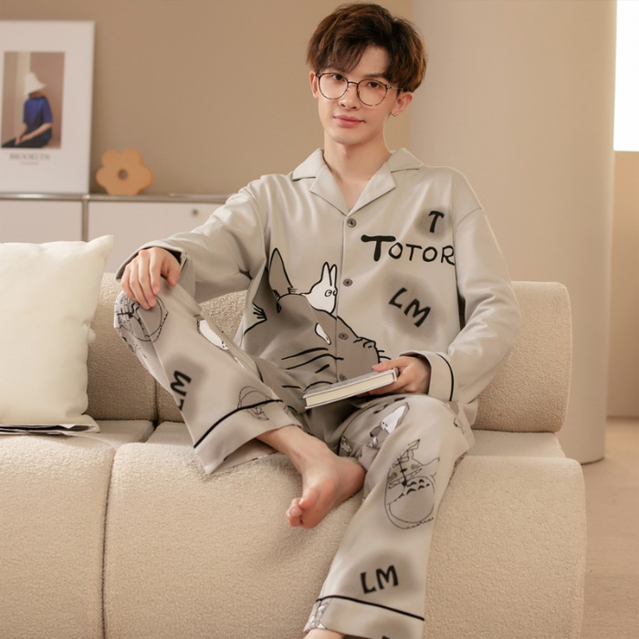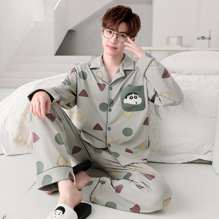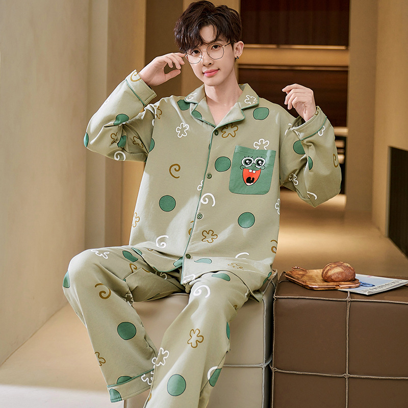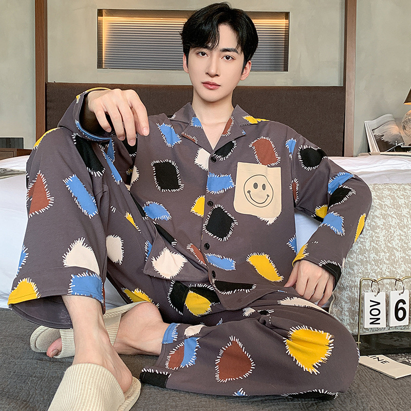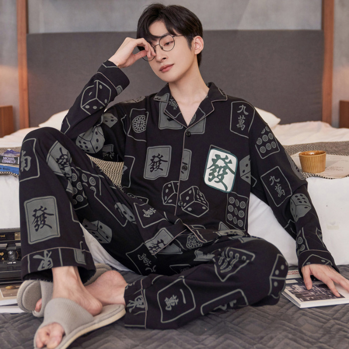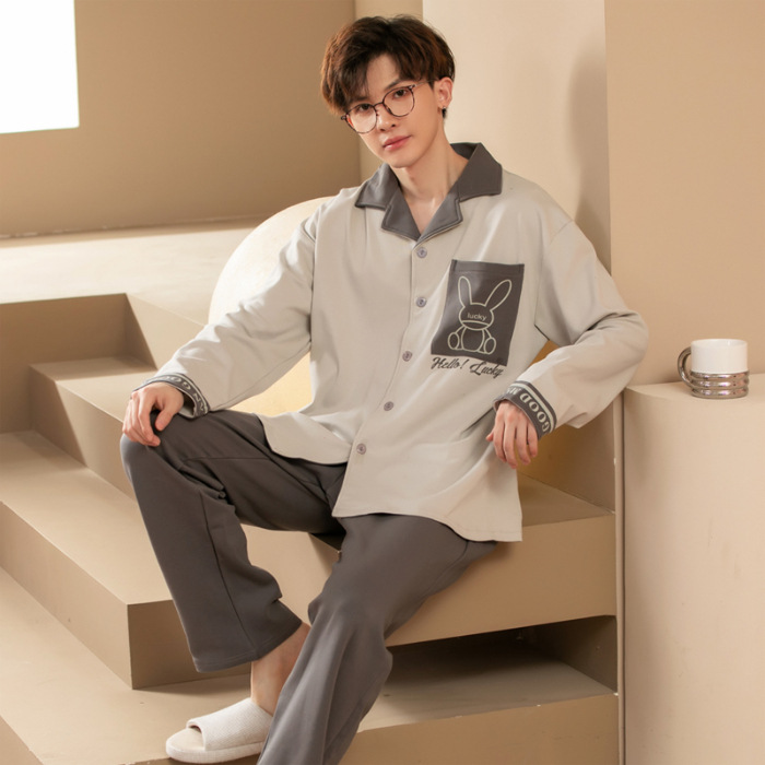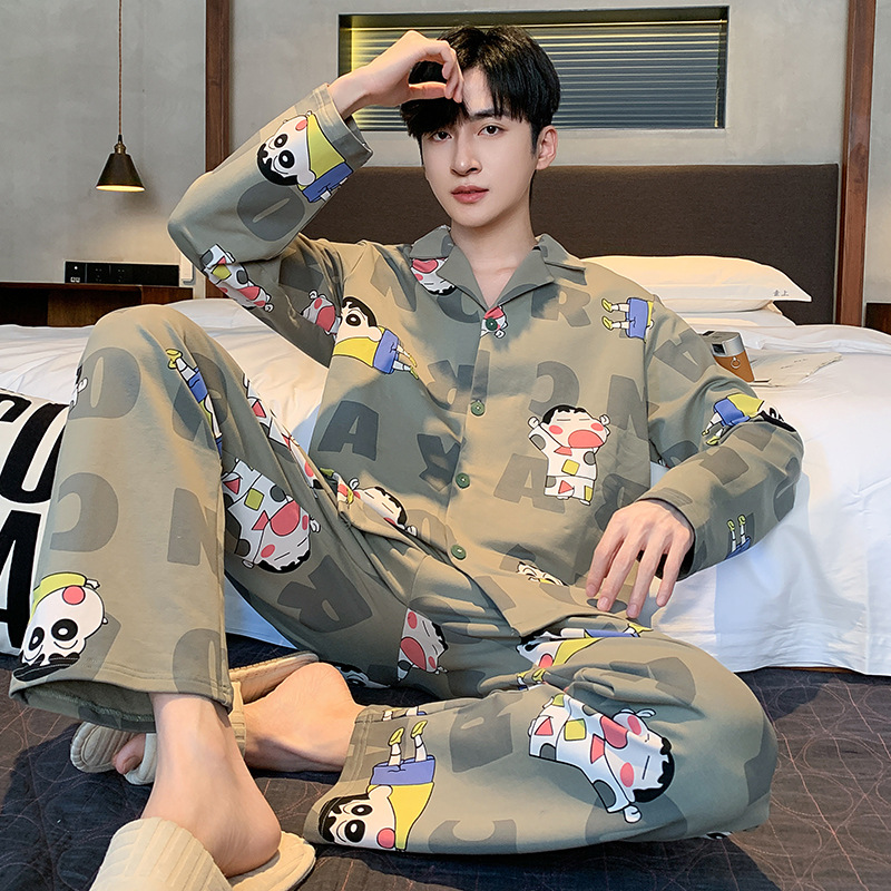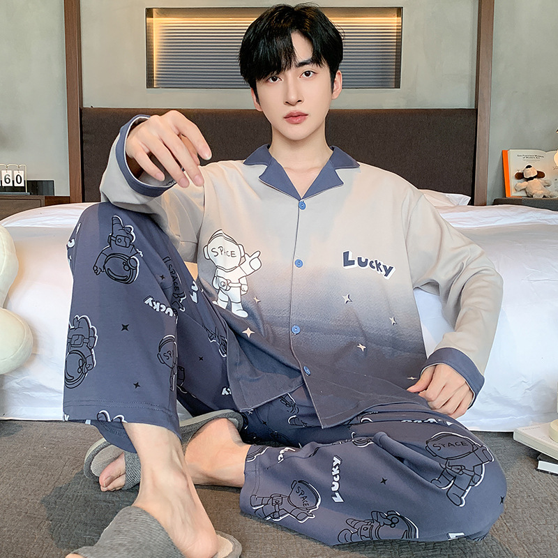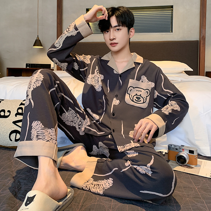Главная страница > Высокое чувство хлопка пижамы Мужская Весна и Осень Корейская версия кардигана с длинным рукавом бренд Tide молодежь может носить домашнюю одежду костюм