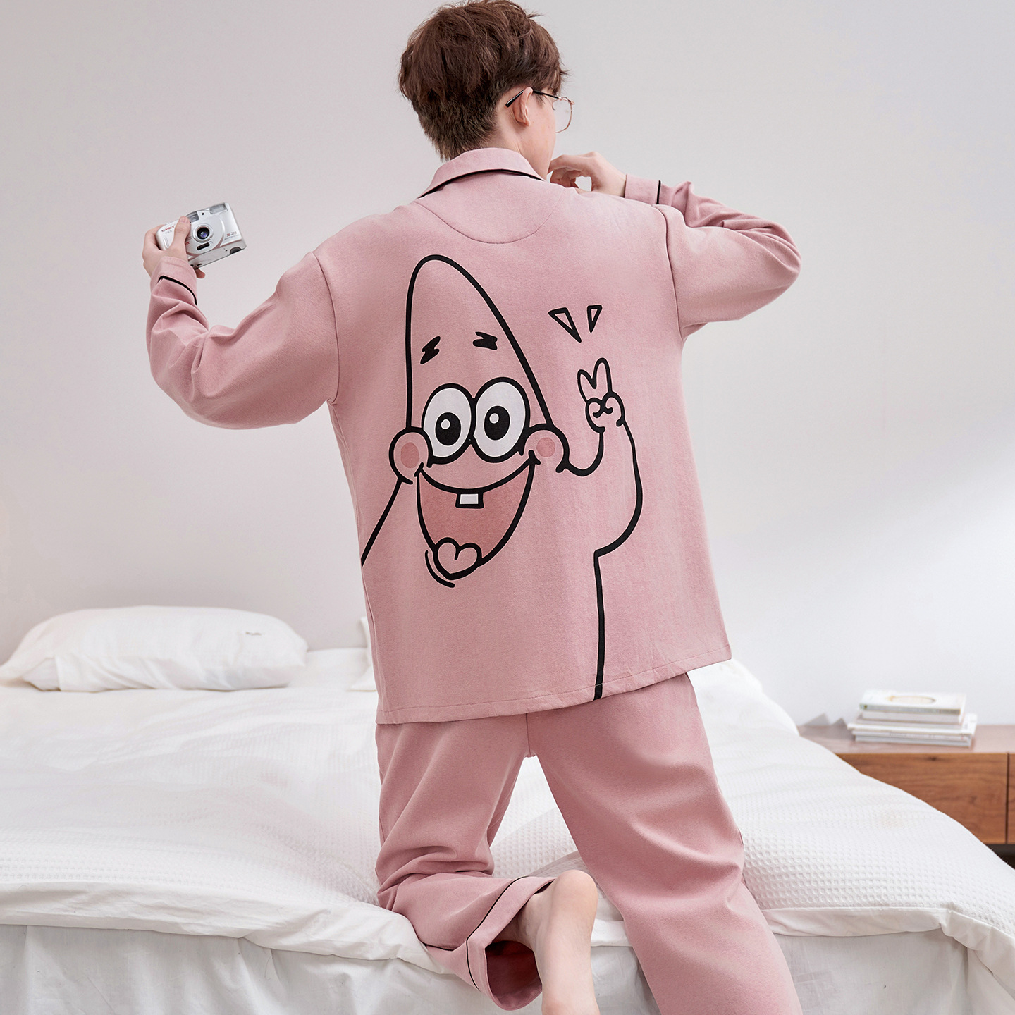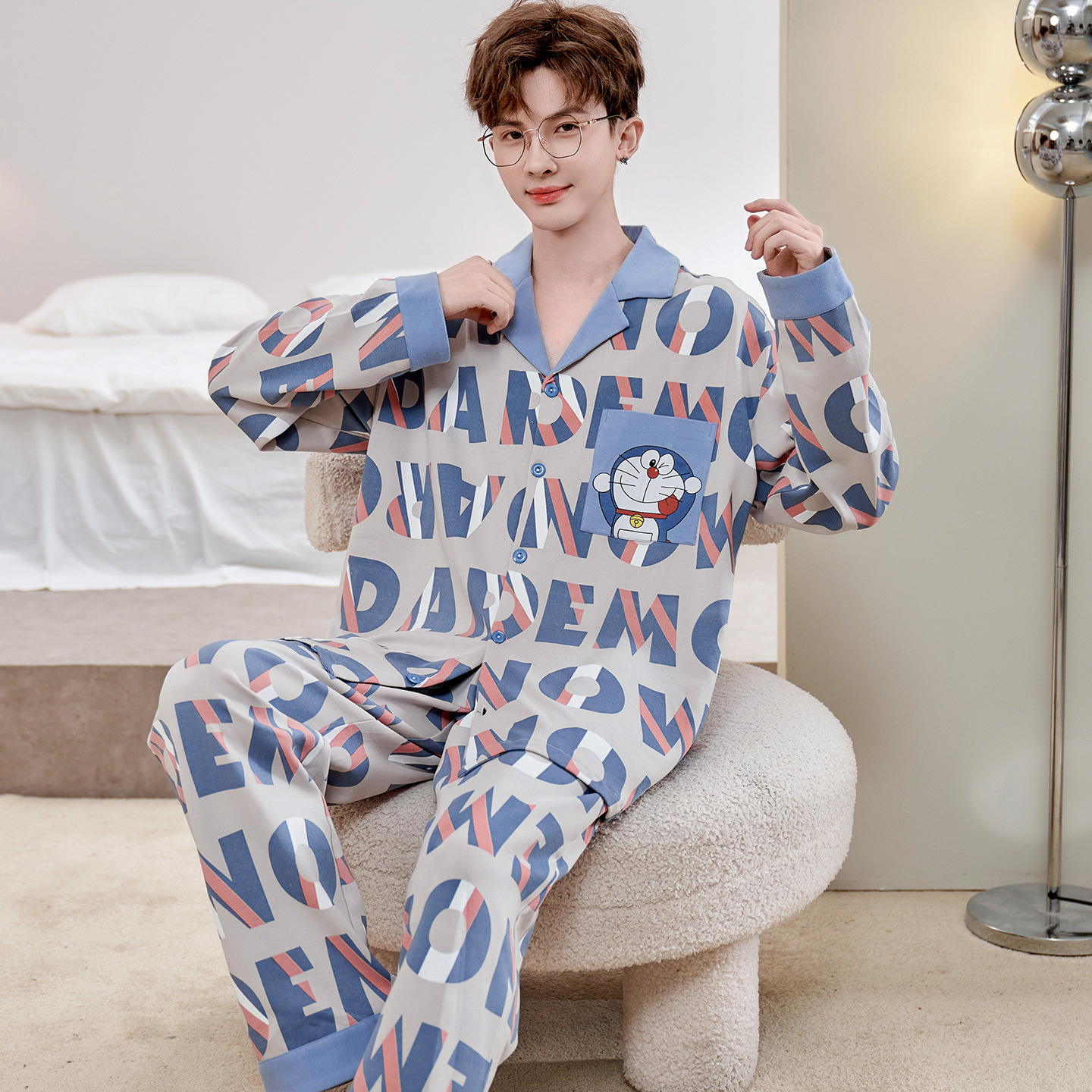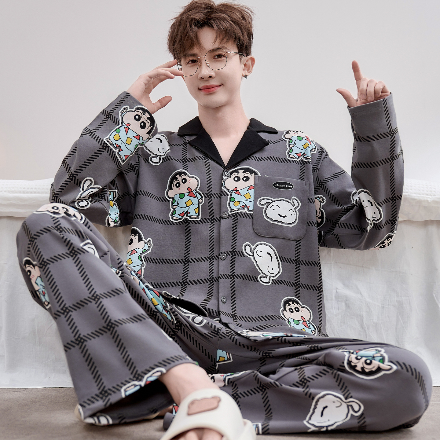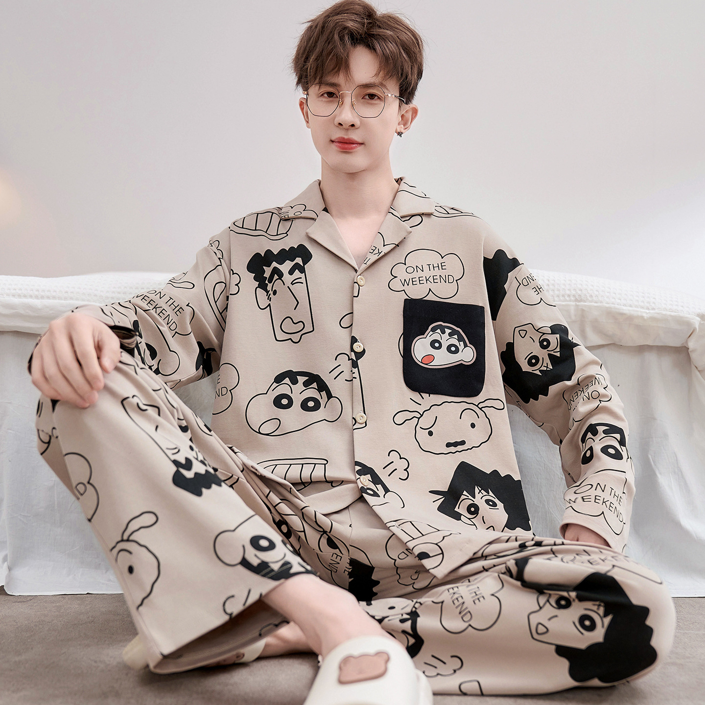 Главная страница > Высокое чувство хлопка пижамы Мужская Весна и Осень Корейская версия кардигана с длинным рукавом бренд Tide молодежь может носить домашнюю одежду костюм