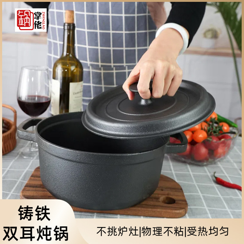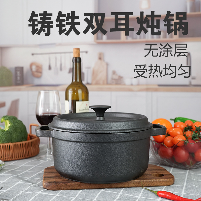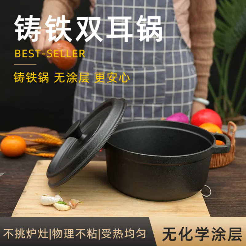 Главная страница > Чугунная кастрюля для тушения, утолщенная железная кастрюля для супа, посуда ручной работы без покрытия, индукционная плита, универсальная кастрюля для тушения с двумя ручками, не Weiyan