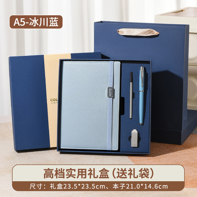 B2-глациевый синий+металлическая ручка+чашка для воды+U-диск-подарочная коробка Подарочный пакет