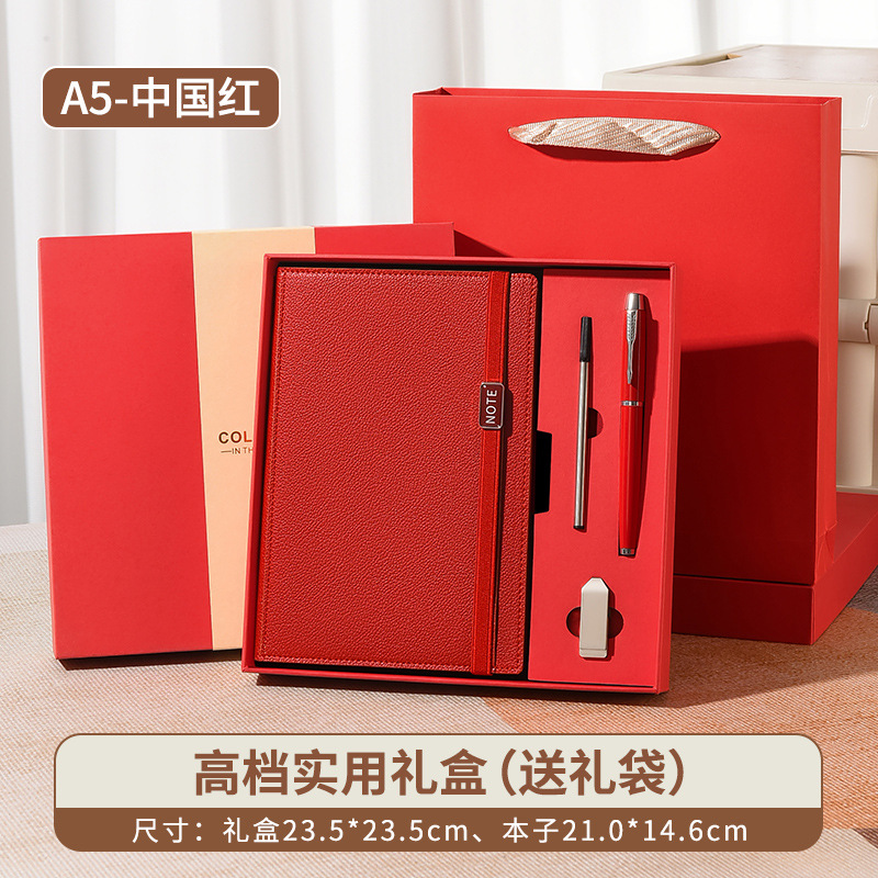 B2-китайский красный + металлическая ручка + чашка для воды + U-диск-подарочная коробка, подарочный пакет