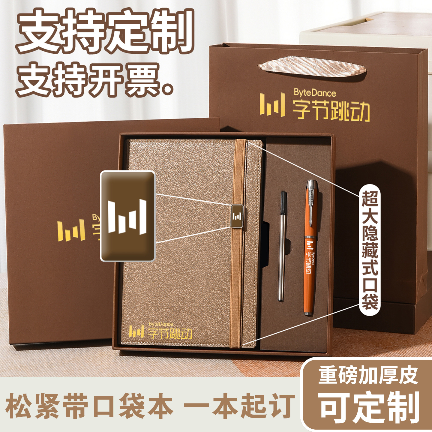 商务笔记本A5贴心本仿皮记录本简约记事本口袋收纳日记本可印LOGO