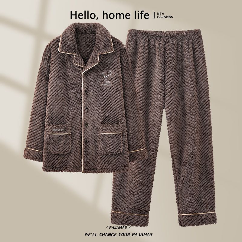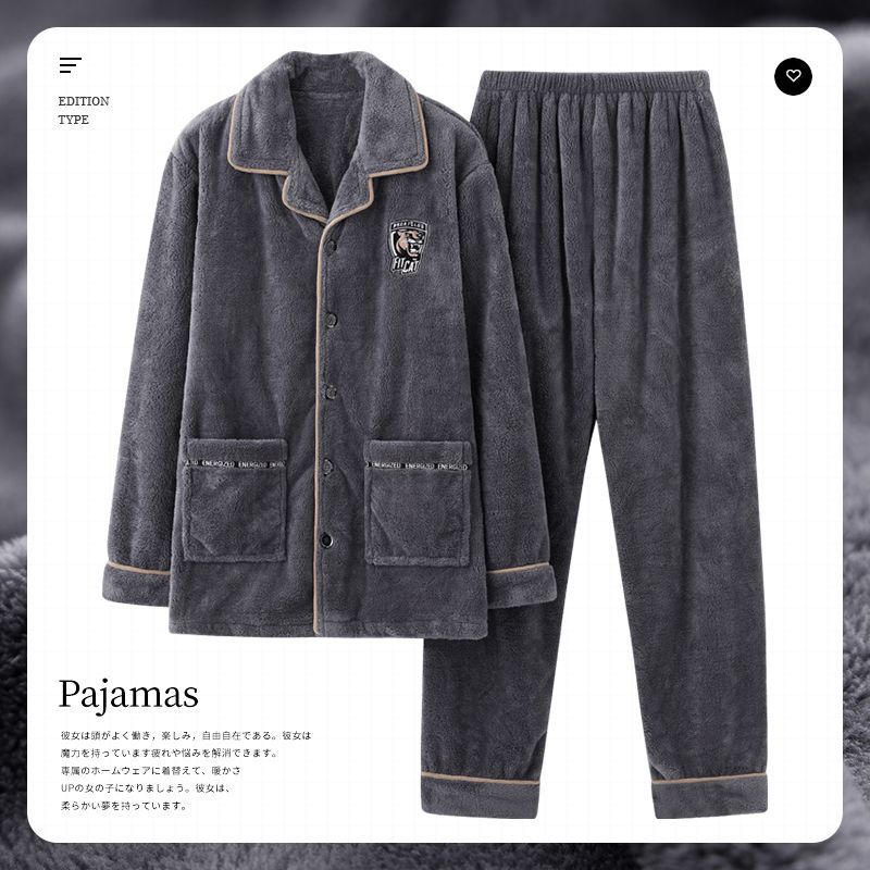 Пижамы мужские зимние утолщенные на флисовой подкладке коралловый бархат теплый фланелевой осенне-зимний комплект мужской домашней одежды большого размера