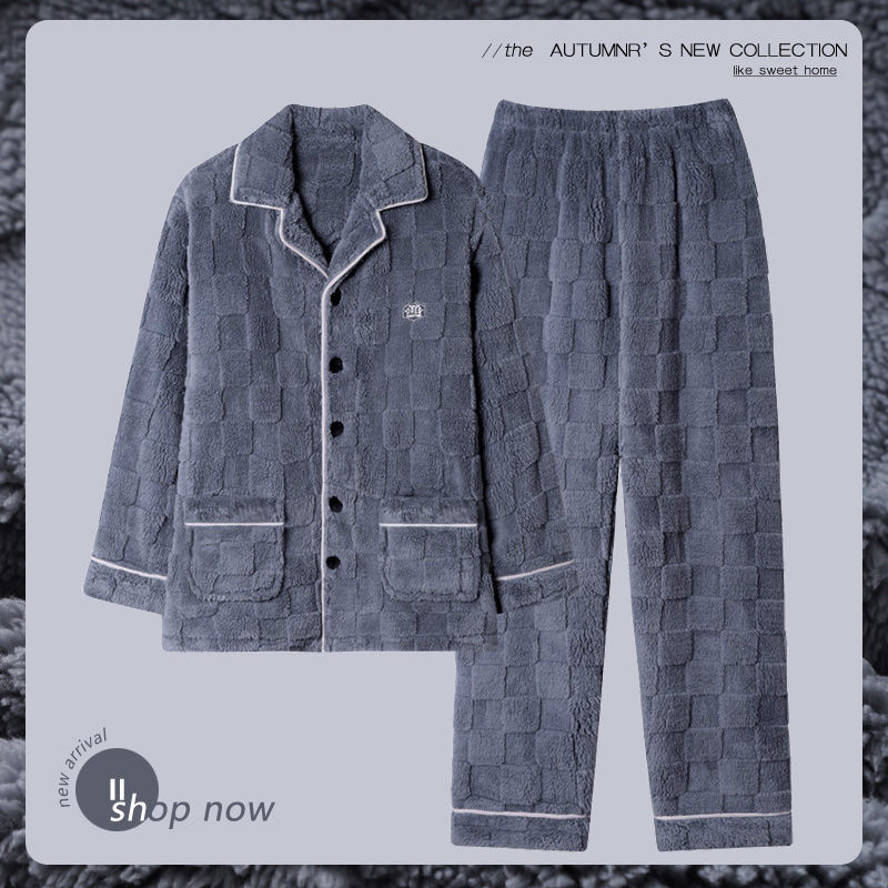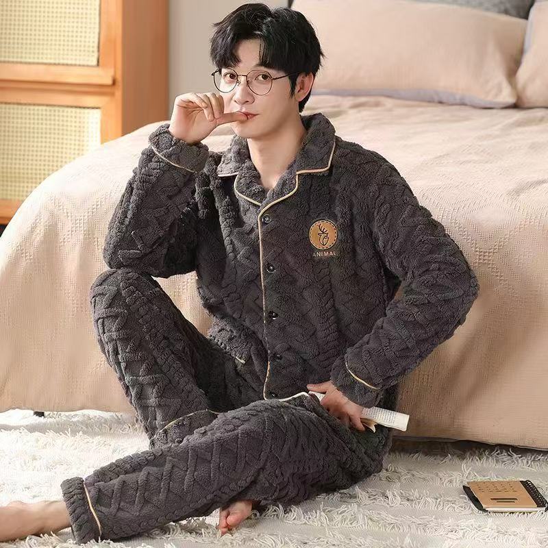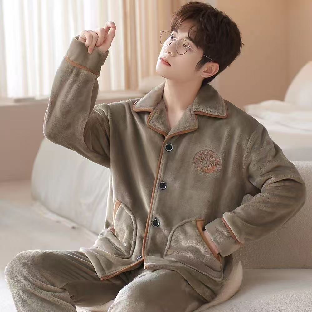 Главная страница > Пижамы мужские зимние утолщенные на флисовой подкладке коралловый бархат теплый фланелевой осенне-зимний комплект мужской домашней одежды большого размера