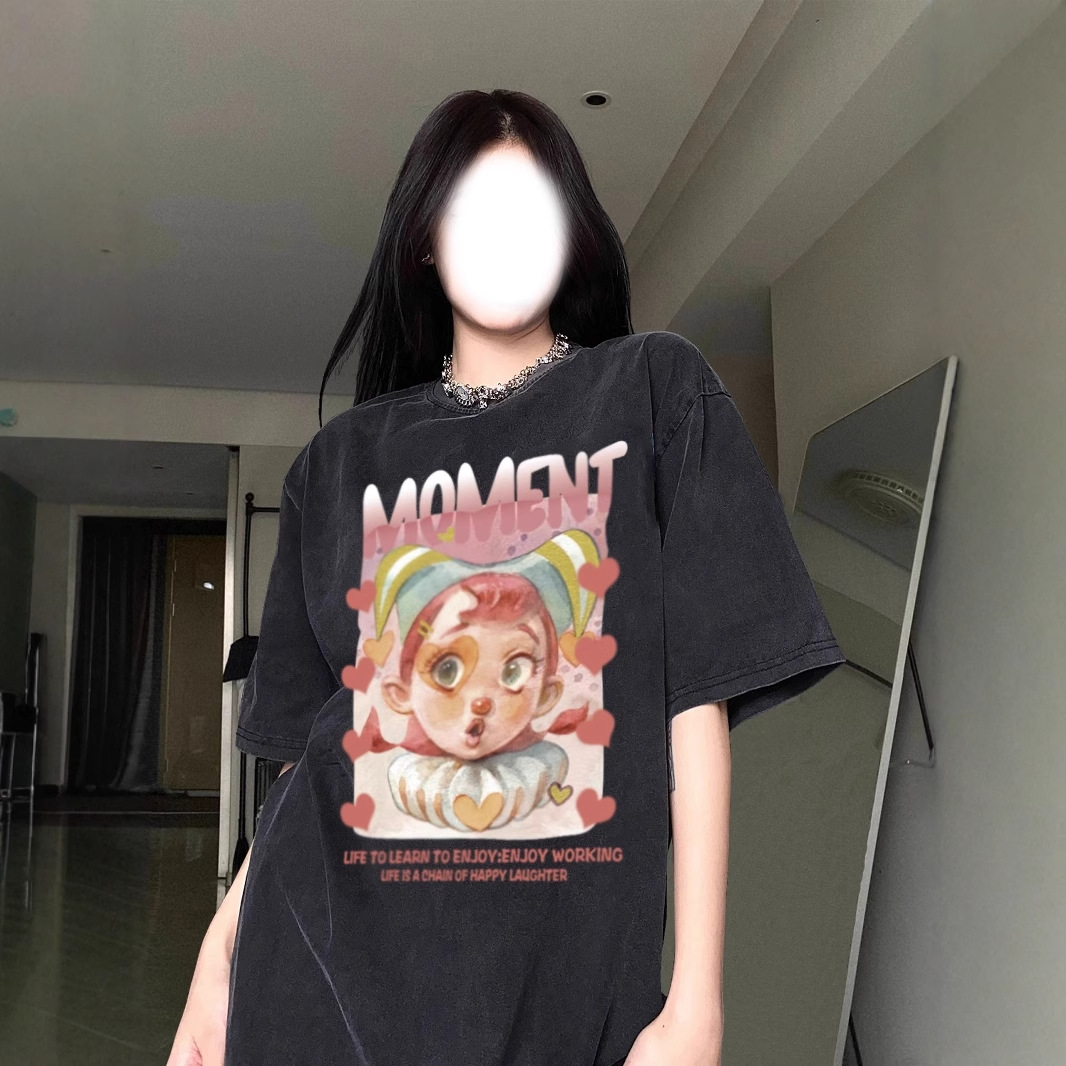 Главная страница > Европейский и американский модный крутой потертый женский летний свободный топ с короткими рукавами и половиной рукавов больших размеров, женский тяжелый чистый хлопок