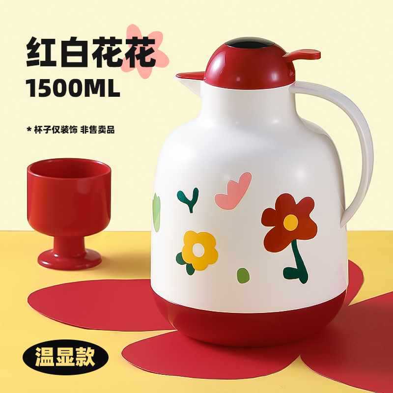 ☆Красно-белый цветочный 1,5 л — модель с дисплеем температуры☆