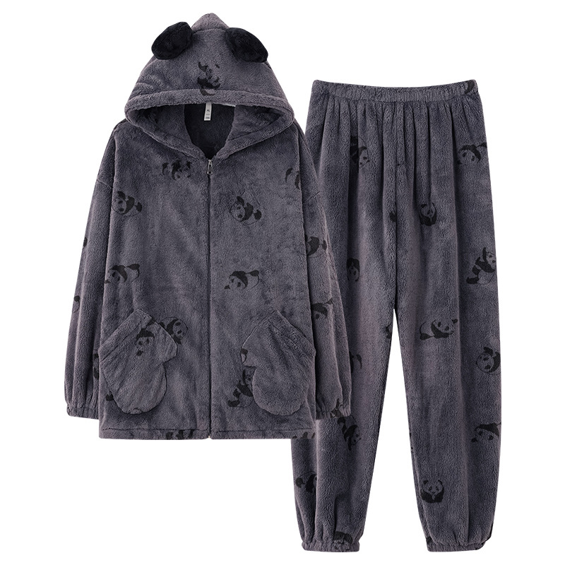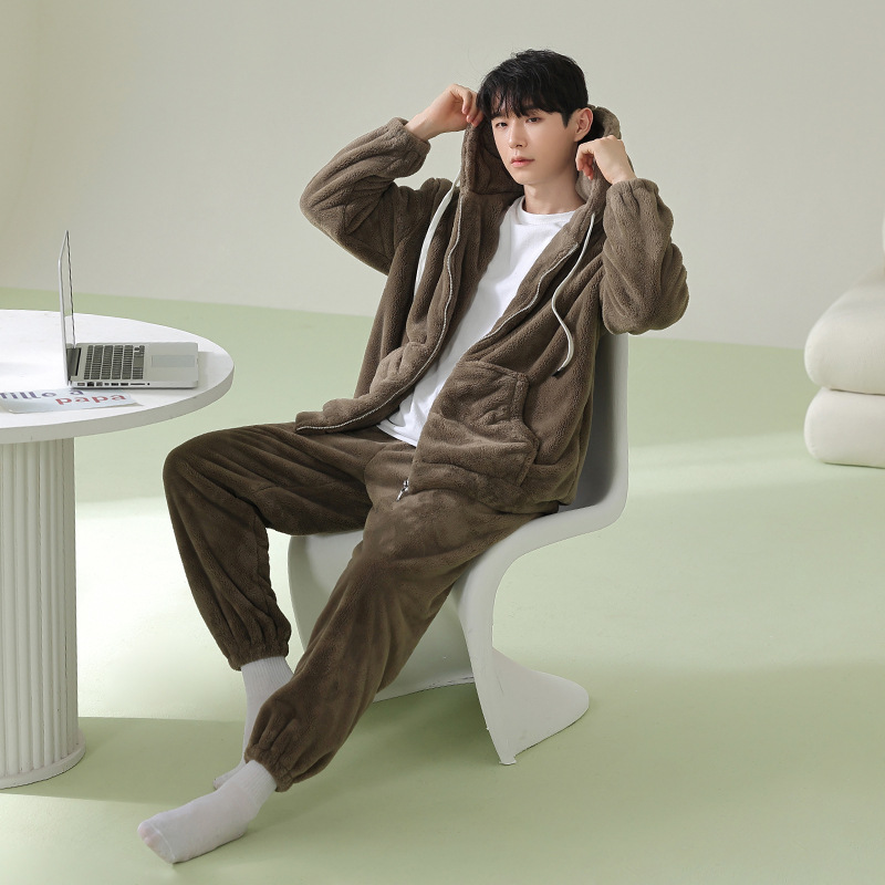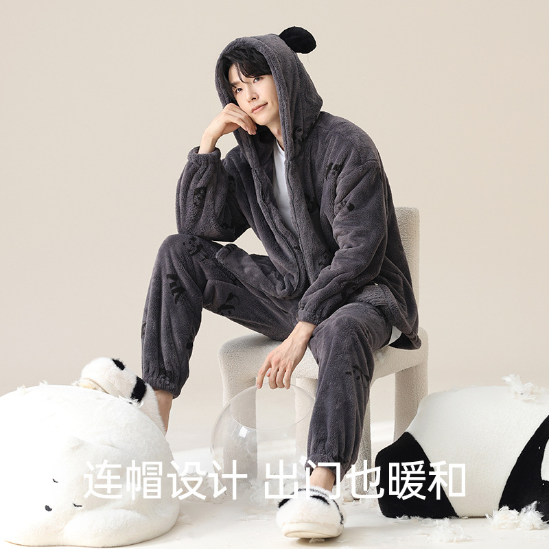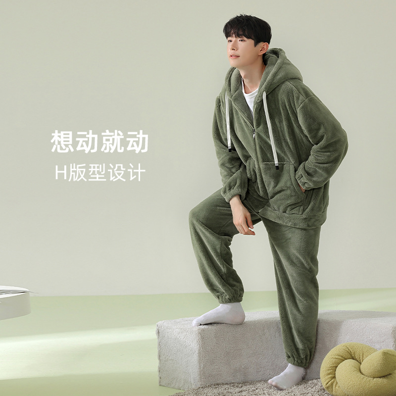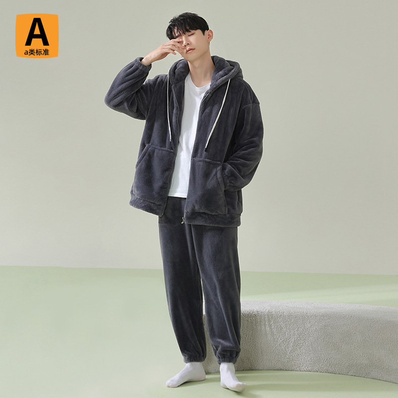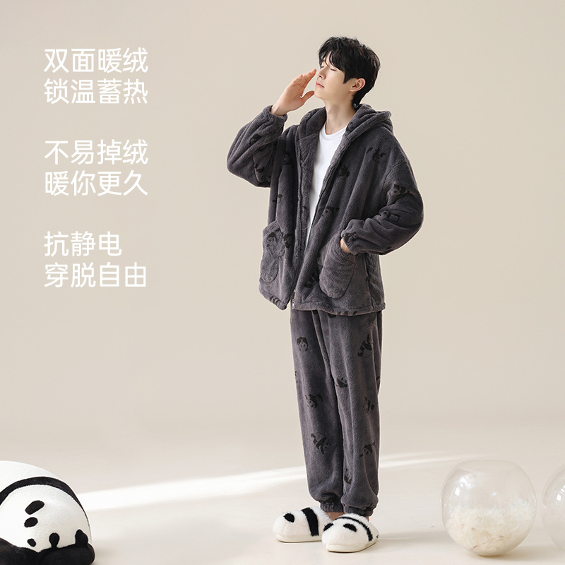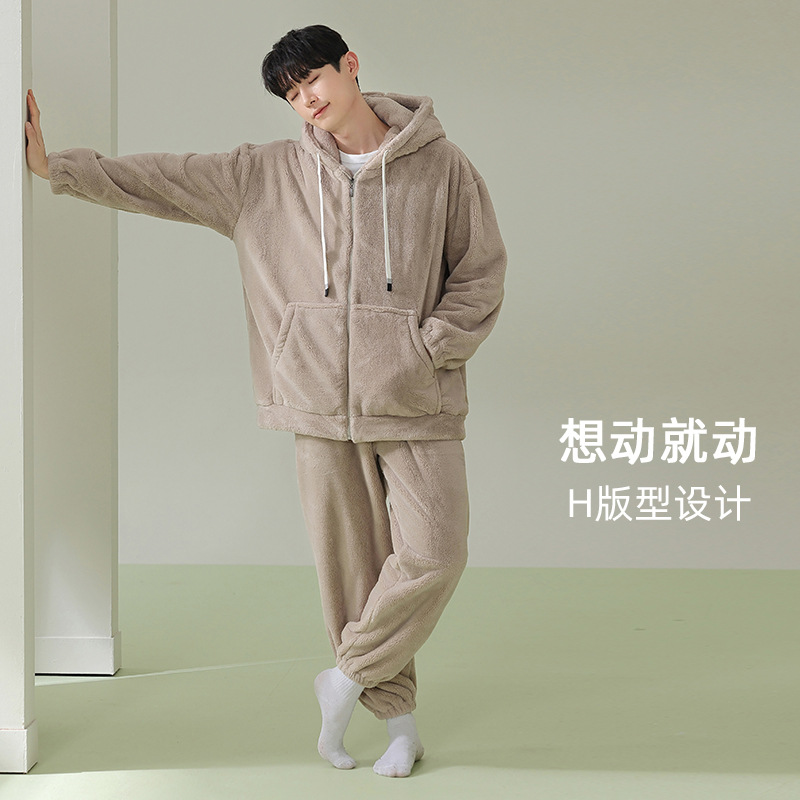 Пижама осенняя и зимняя мужская теплая и плюшевая толстая наложница