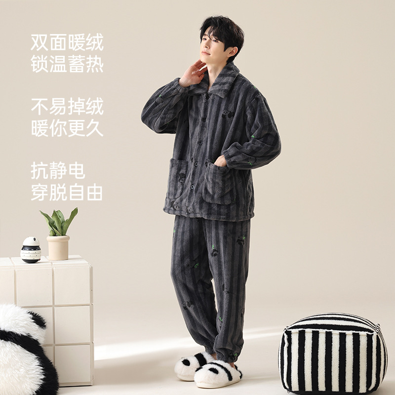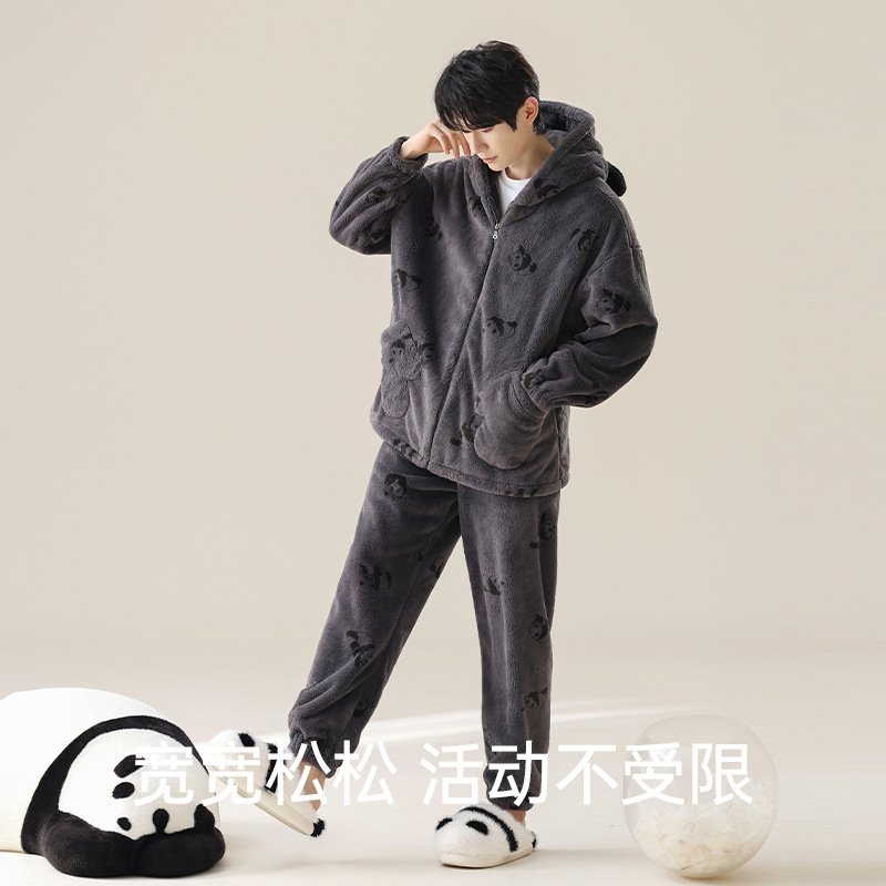 Главная страница > Пижама осенняя и зимняя мужская теплая и плюшевая толстая наложница