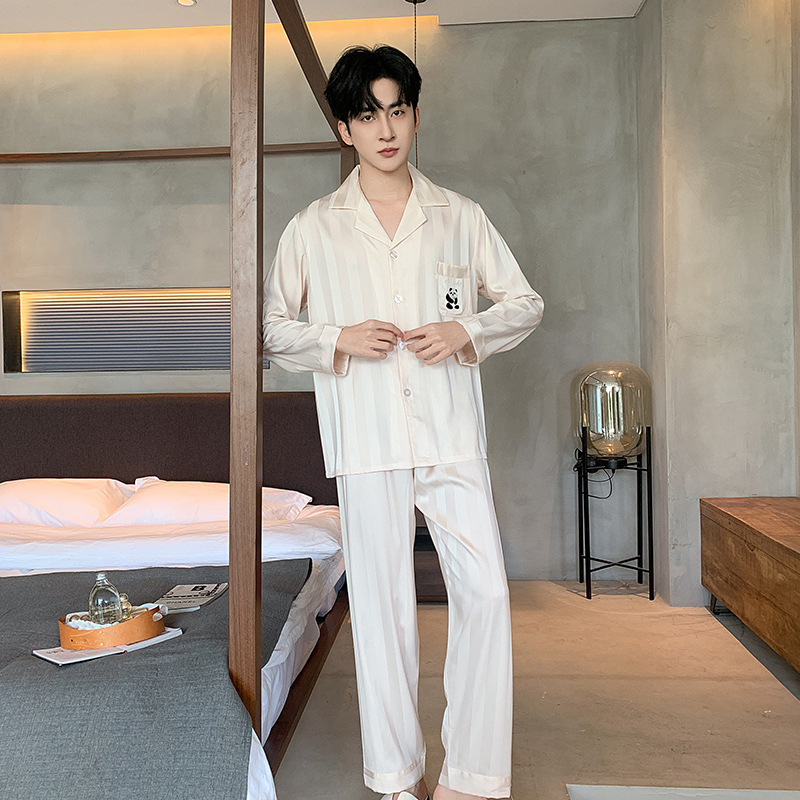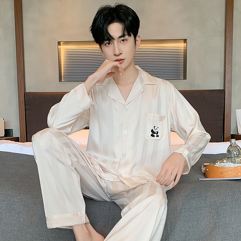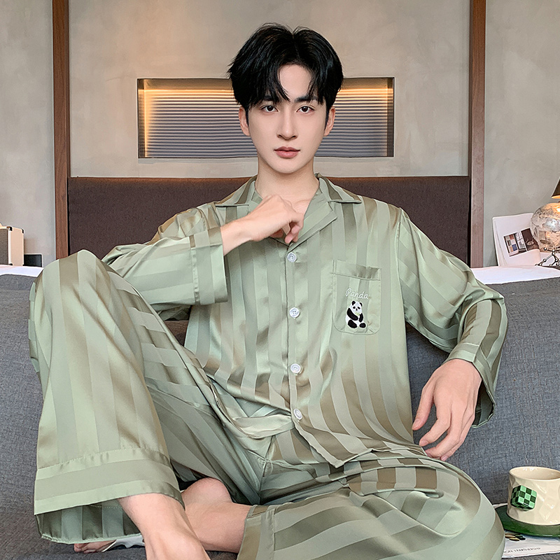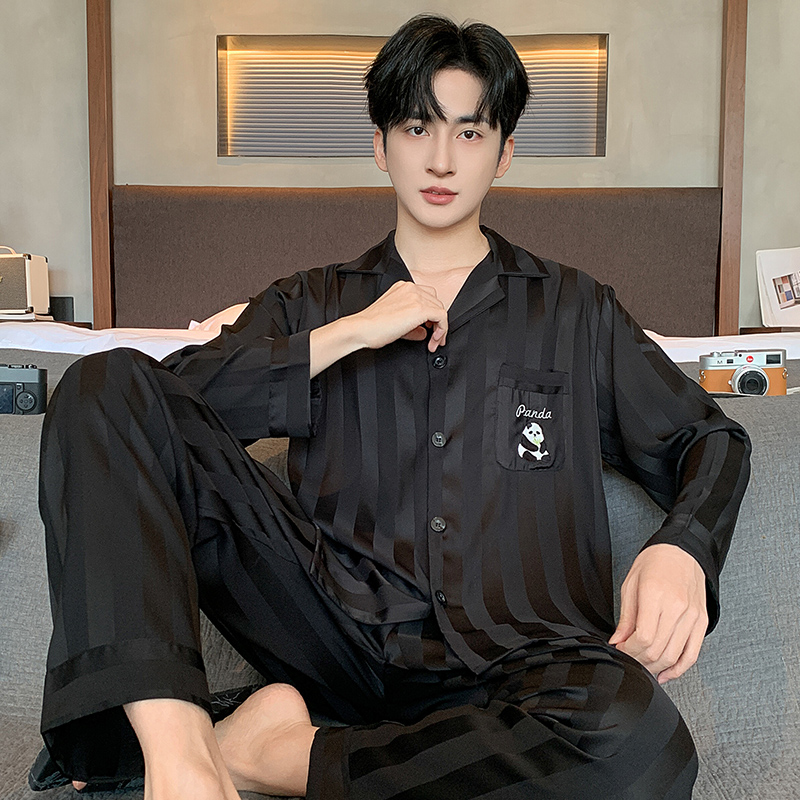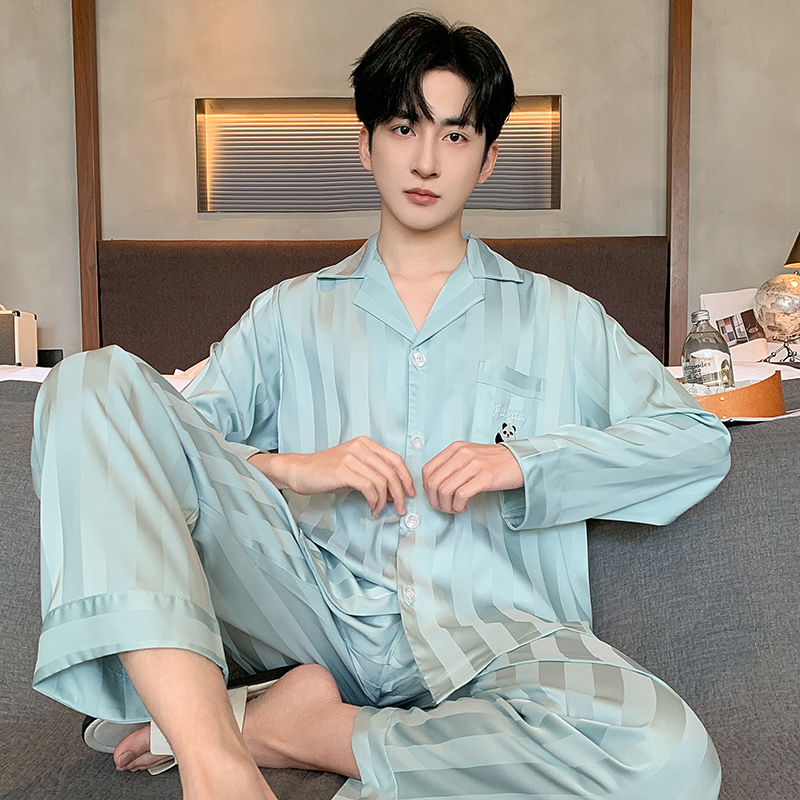 Главная страница > Мужской комплект для дома из ледяного шелка, новинка 2025 года, весна-осень, тонкий, больших размеров, с длинным рукавом, B12-532