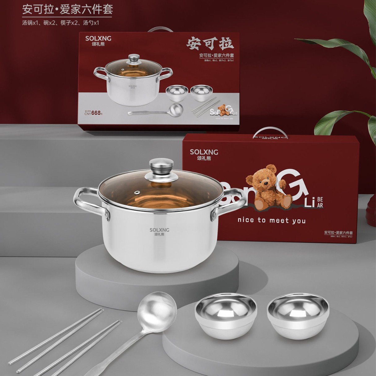 Кастрюля Songli Xiong Aoli из утолщенной нержавеющей стали с двумя ручками для приготовления на пару, тушения и варки, для домашнего использования, подходит для газовых и индукционных плит, подарочная кастрюля.