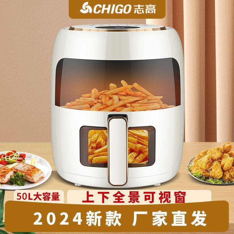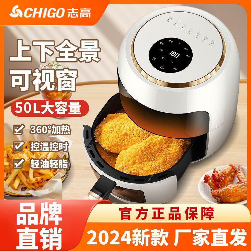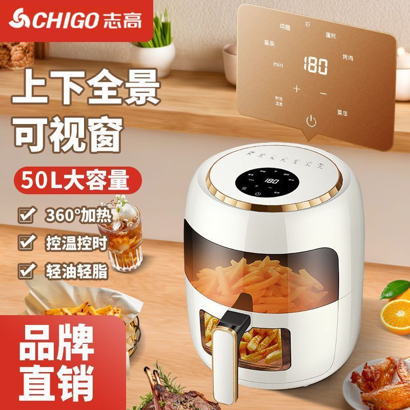 Бытовая аэрофритюрница Chigo, без переворачивания, панорамный вид, большая емкость, многофункциональная, полностью автоматическая, новая электрическая духовка