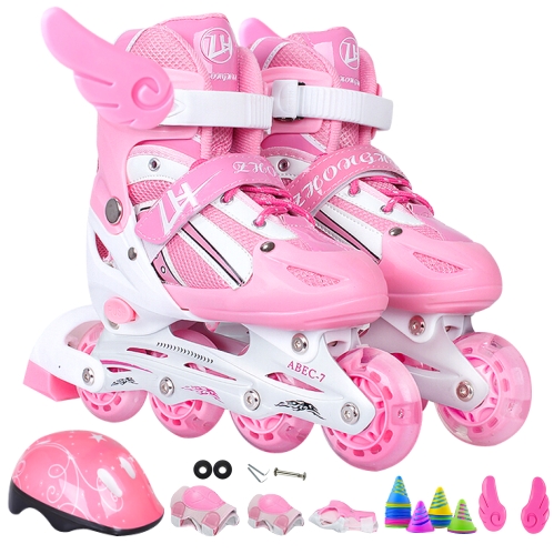 Рекомендуется для начинающих - защита ног от столкновений - розовый костюм [в комплект входит: обувь + шлем + комплект защитного снаряжения из 6 предметов]