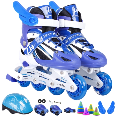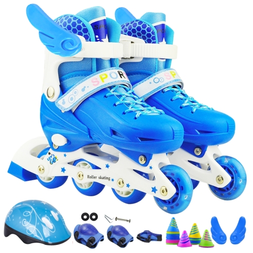 Рекомендуется для начинающих - защита ног от столкновений - синий комплект [включает в себя: обувь + шлем + комплект защитного снаряжения из 6 предметов]