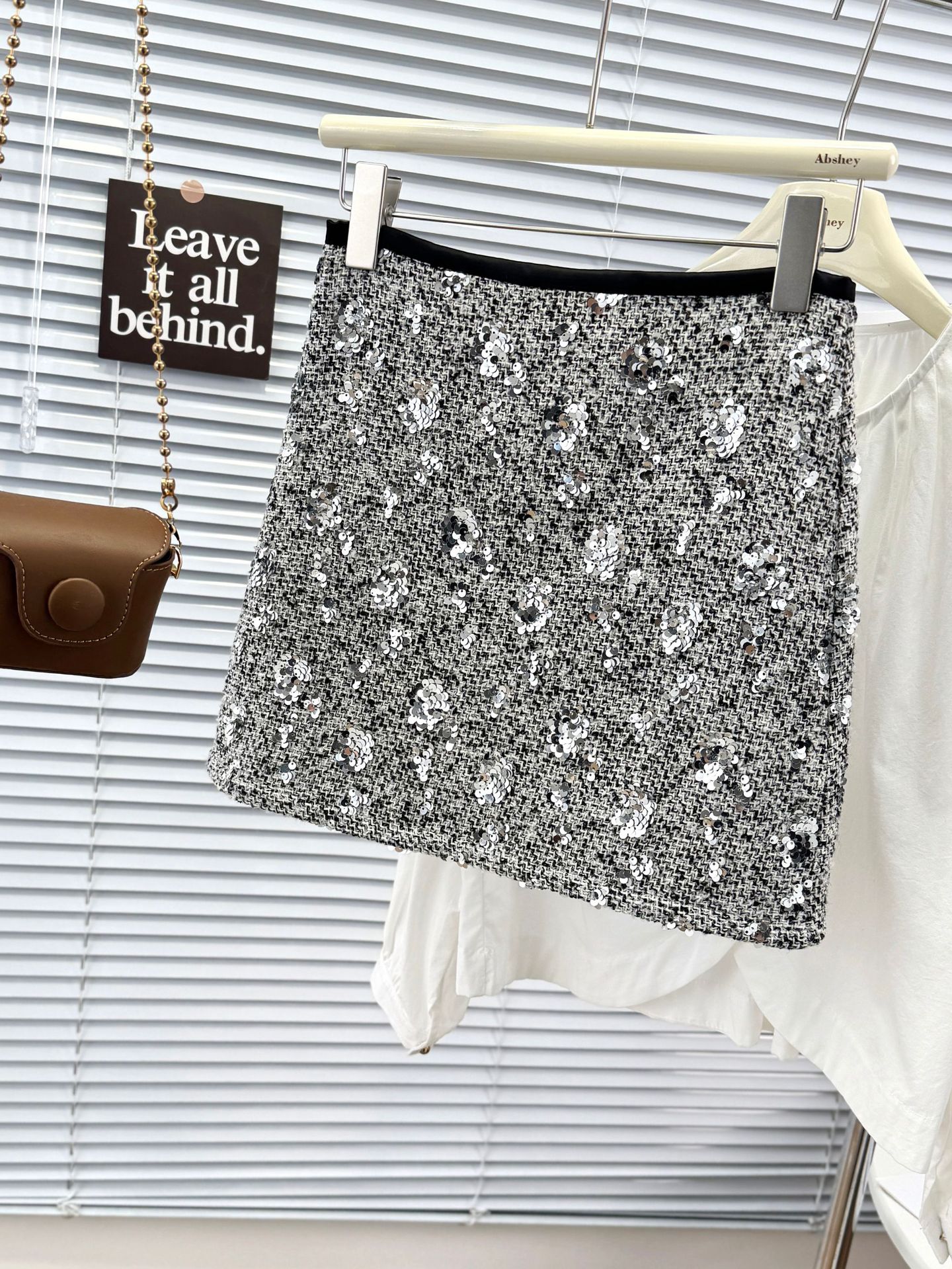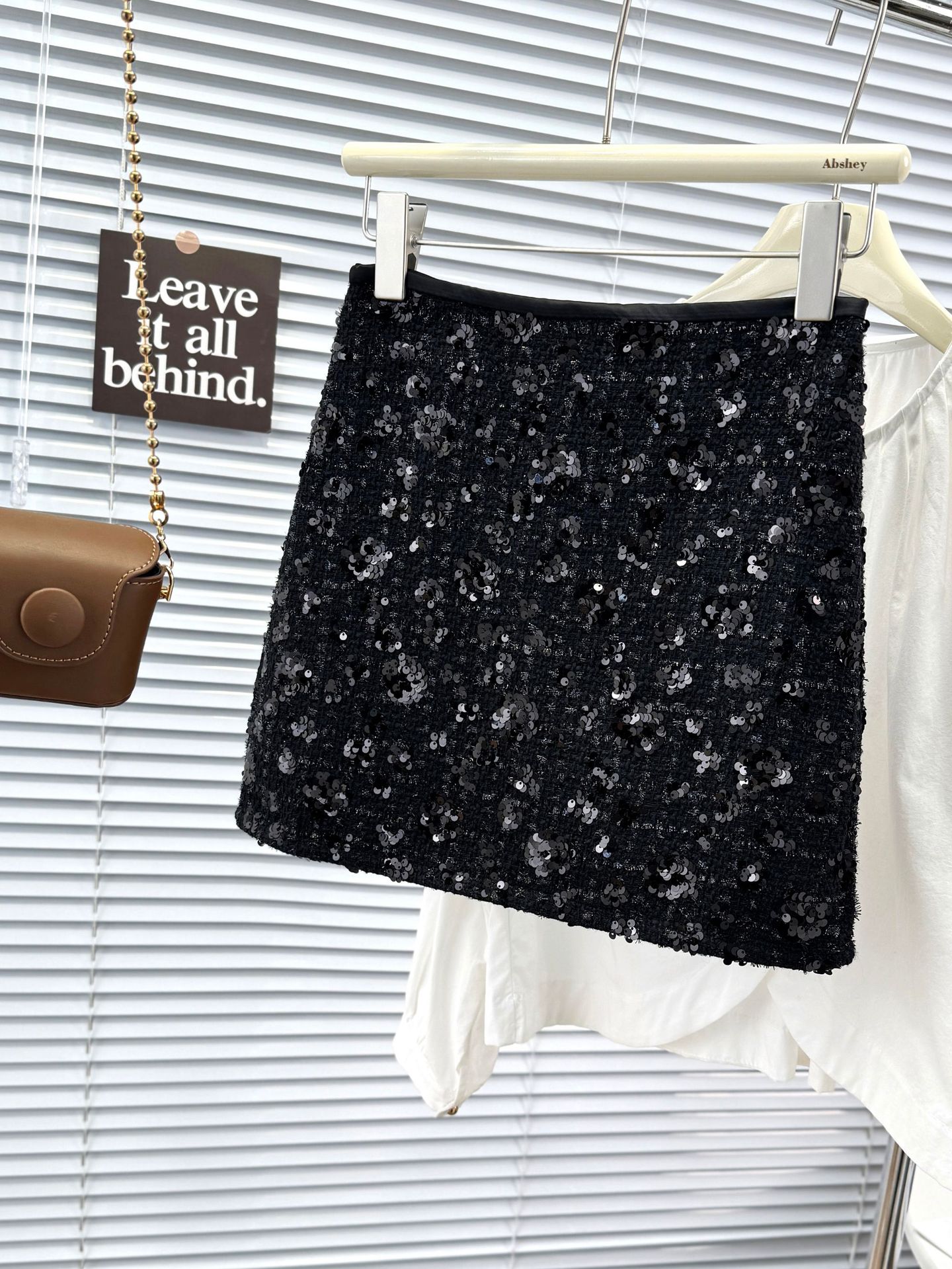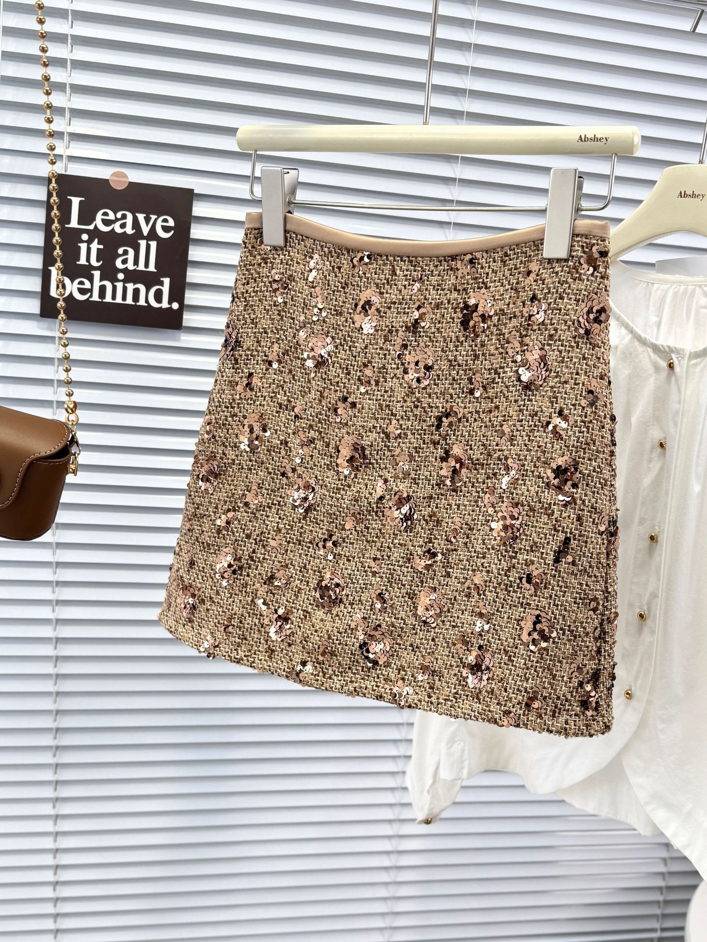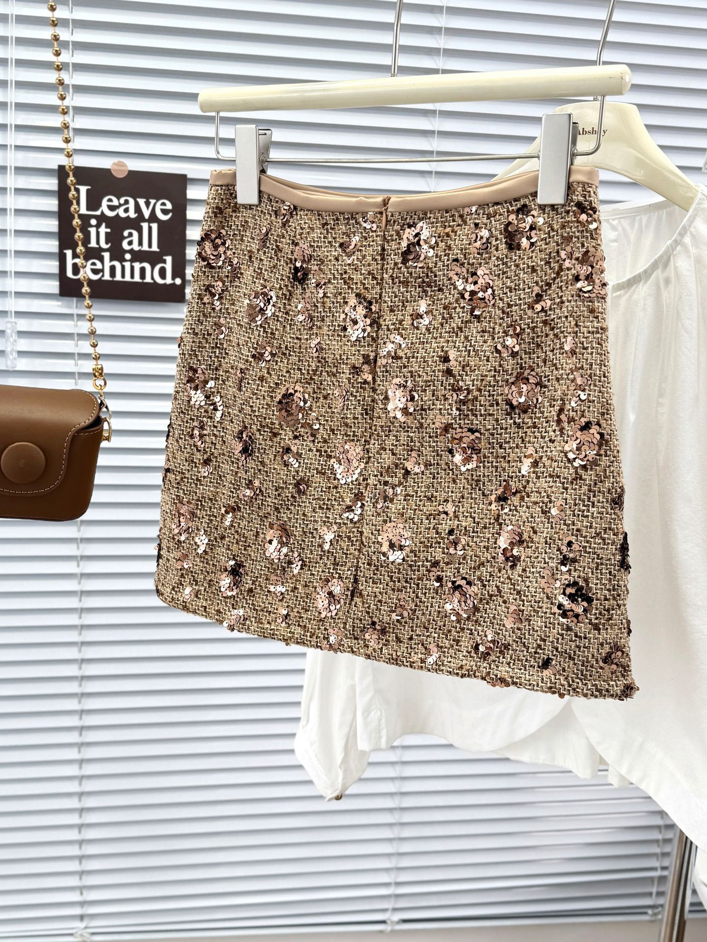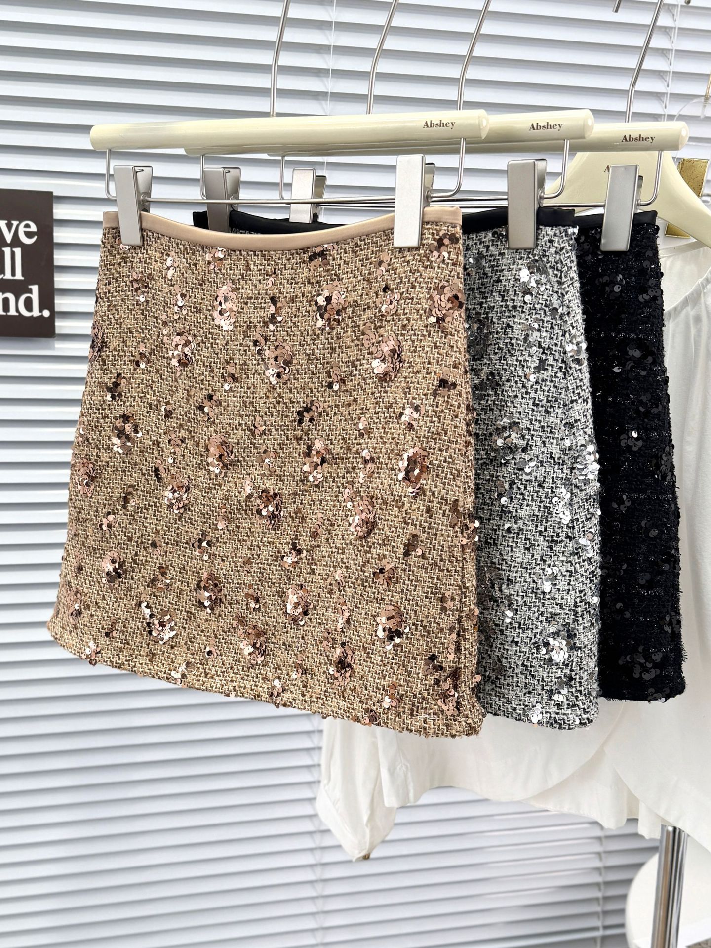 Главная страница > Золотая дизайнерская юбка с блестками, стильная женская леди, высокая талия, тонкая юбка бедра, маленькая юбка