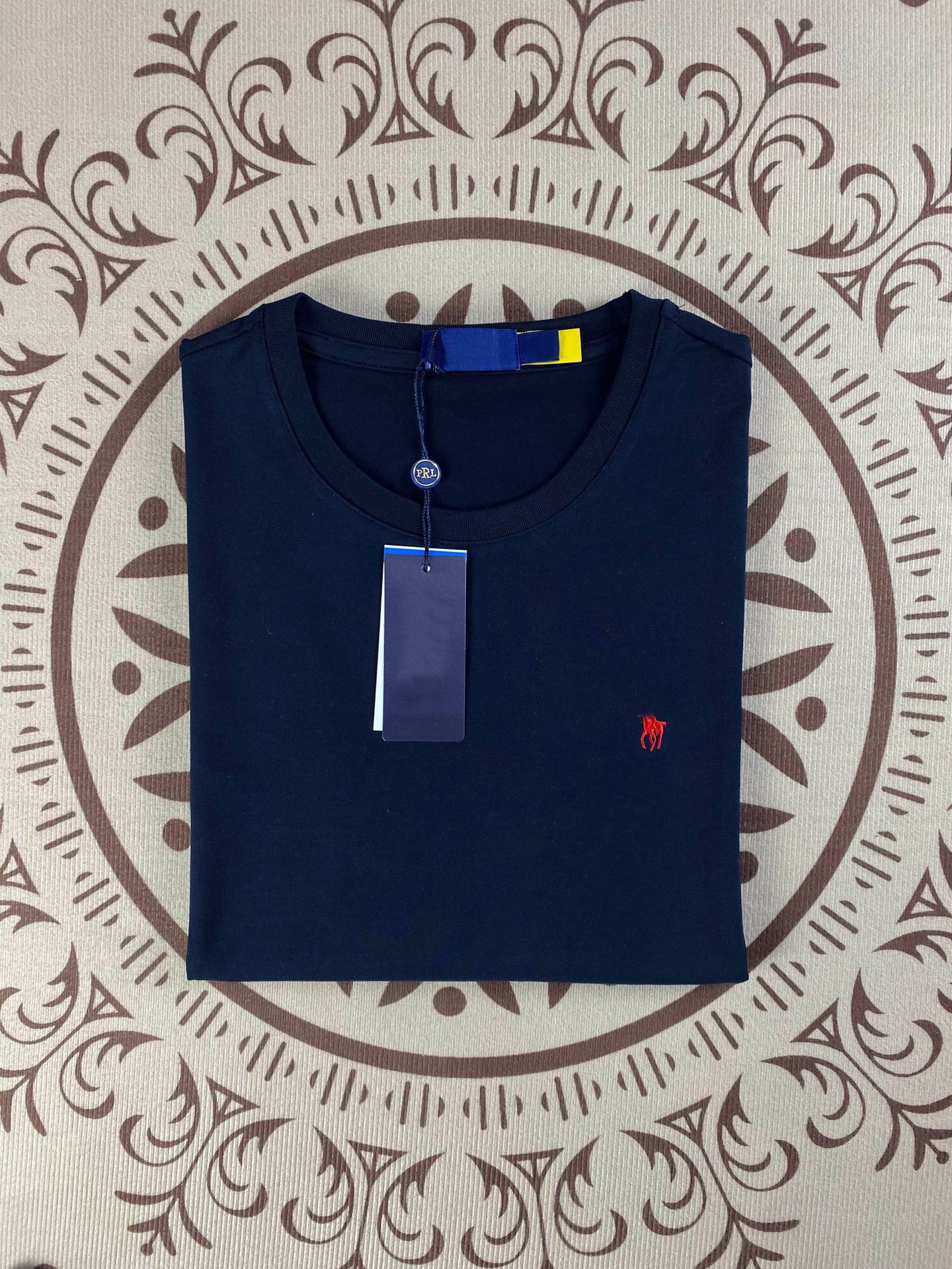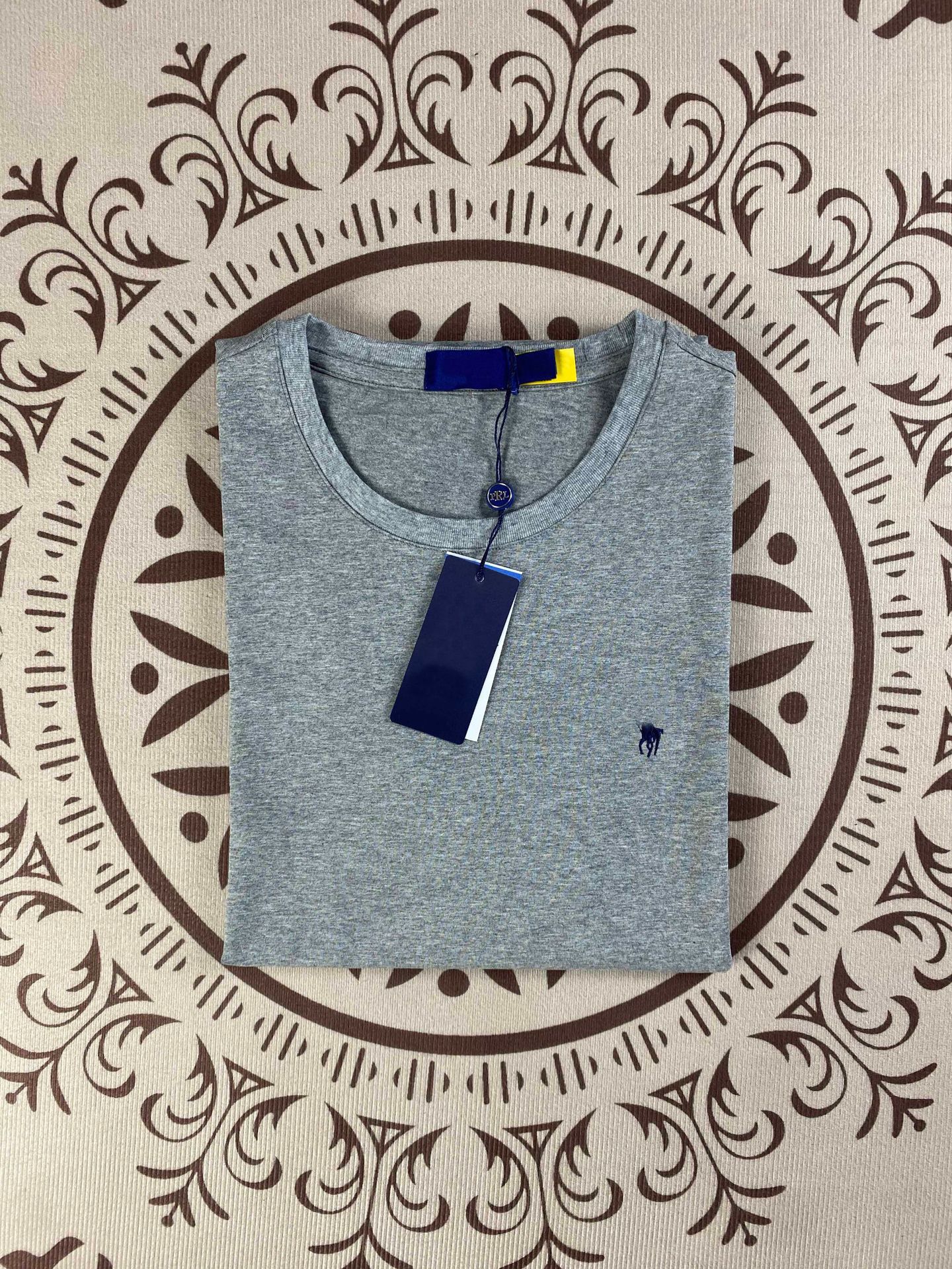 RL Rlaf Po стандартная хлопковая американская футболка с короткими рукавами мужская вышивка с круглым вырезом летняя пара топ женский сплошной цвет