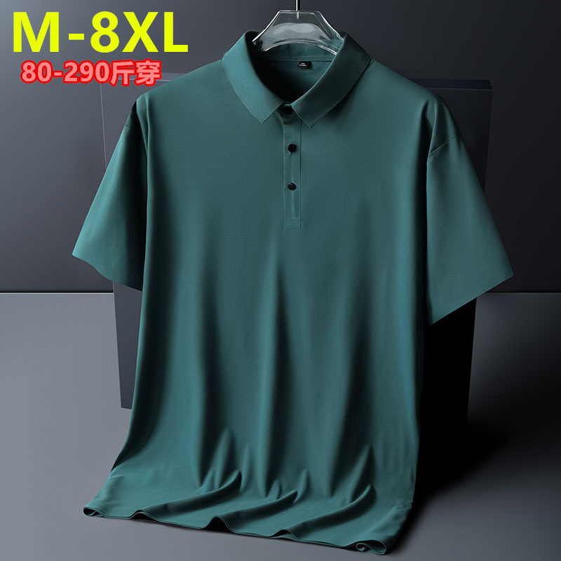 Главная страница > M-8XL рубашка с короткими рукавами из ледяного шелка POLO мужская летняя футболка с лацканом с половиной рукава свободная толстая быстрая топ
