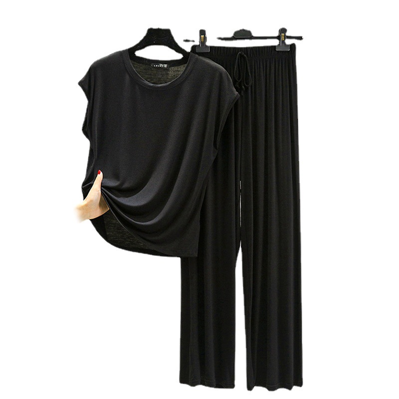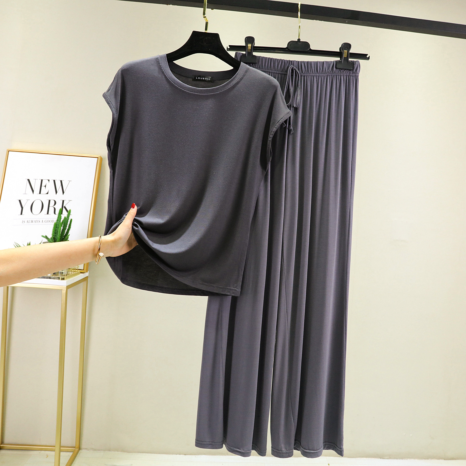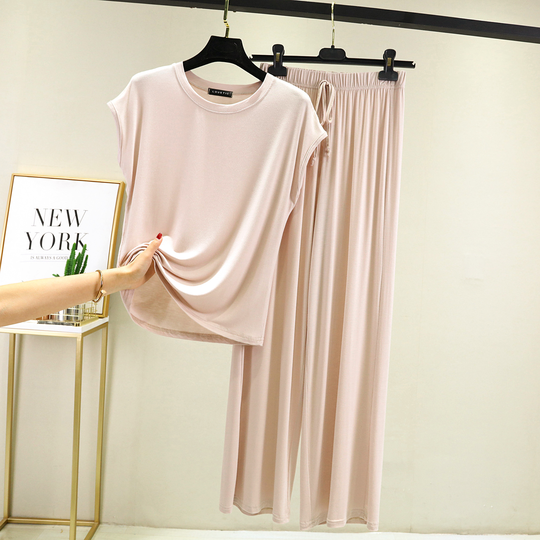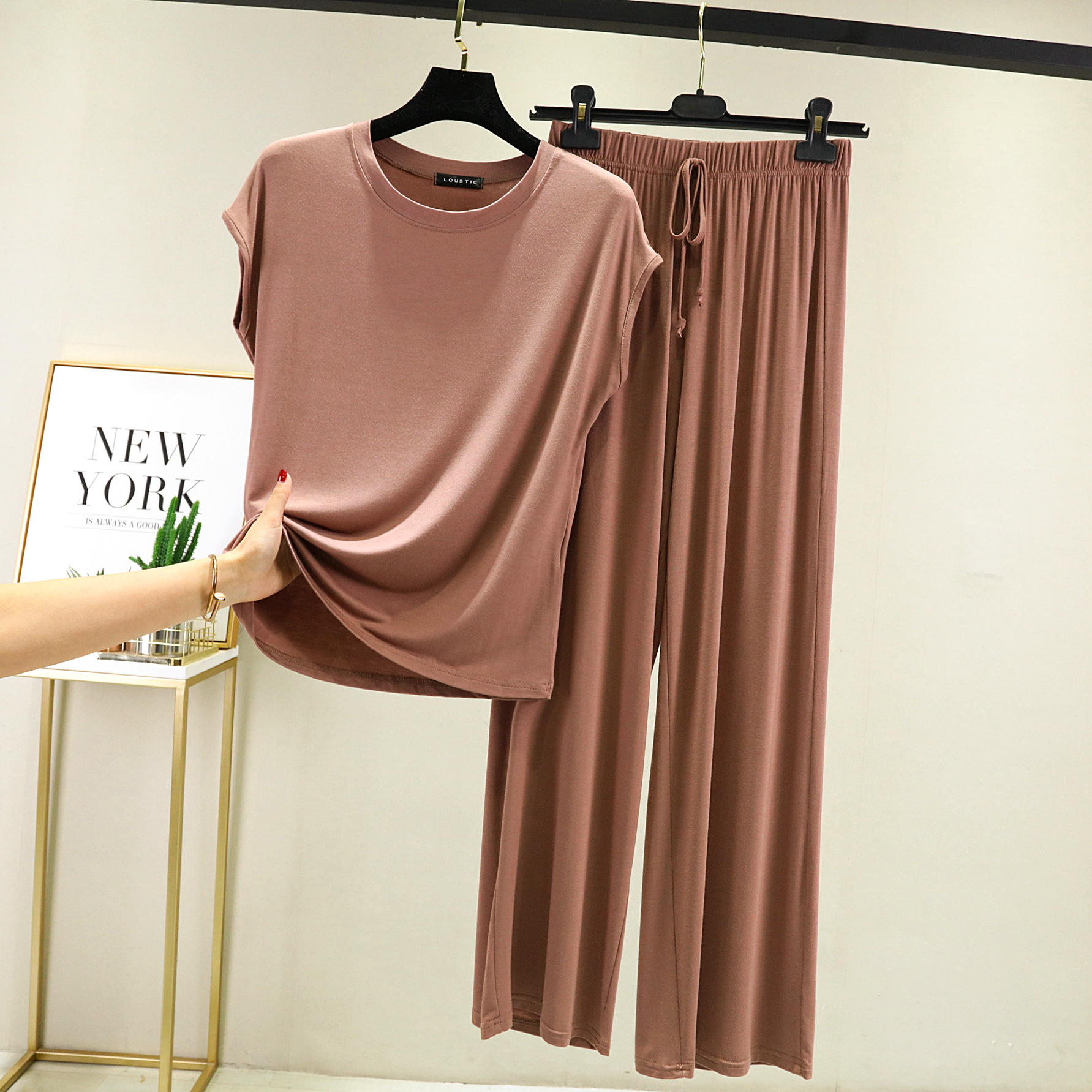 2021 лето новая модаль корейская повседневная футболка женская рубашка свободный большой размер прямой набор домашних брюк