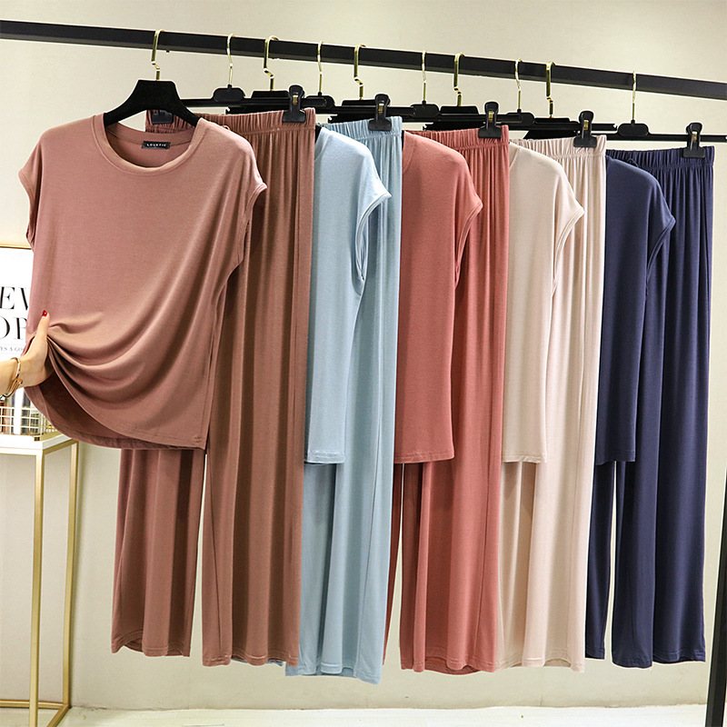 Главная страница > 2021 лето новая модаль корейская повседневная футболка женская рубашка свободный большой размер прямой набор домашних брюк