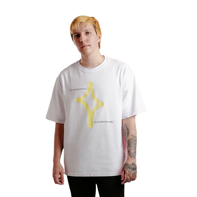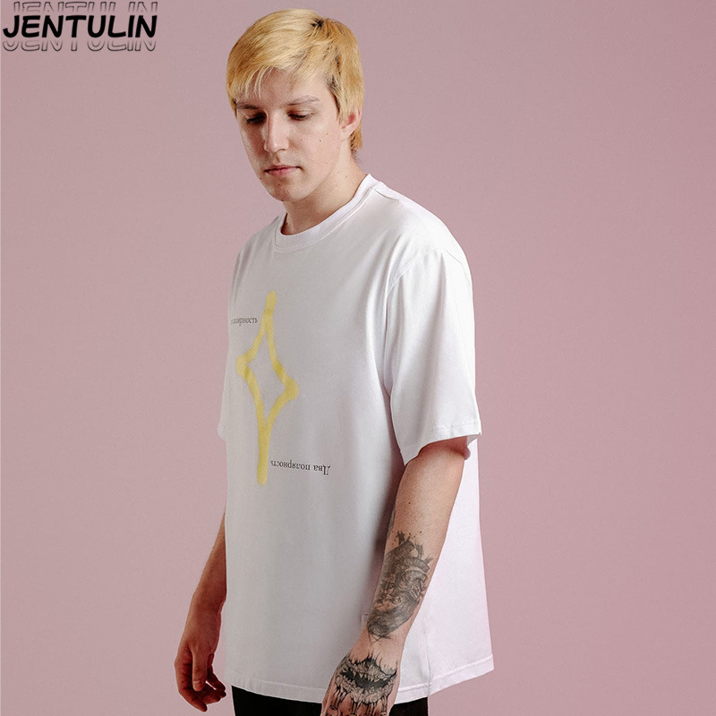 Главная страница > Европейская и американская нишевые футболки с минималистским принтом белая дикая рубашка с короткими рукавами мужская T свободная ретро-рубашка с круглым вырезом через границу