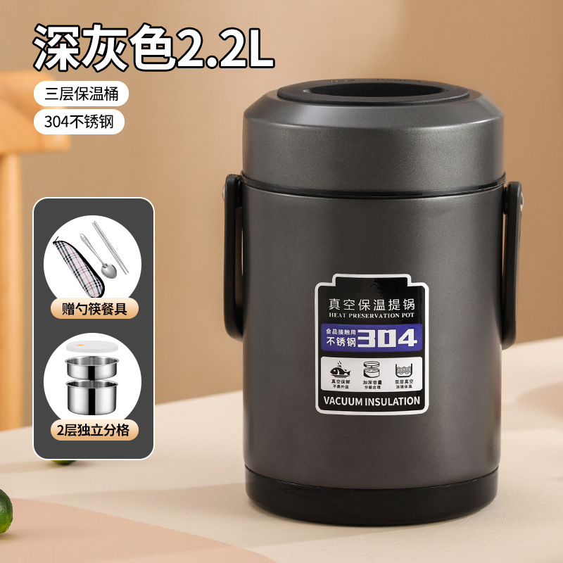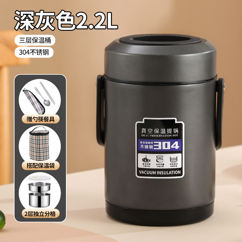 Ведро с трехслойной изоляцией 2,2л [высококачественный серый] + посуда + термосумка