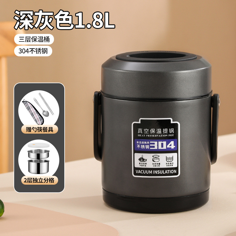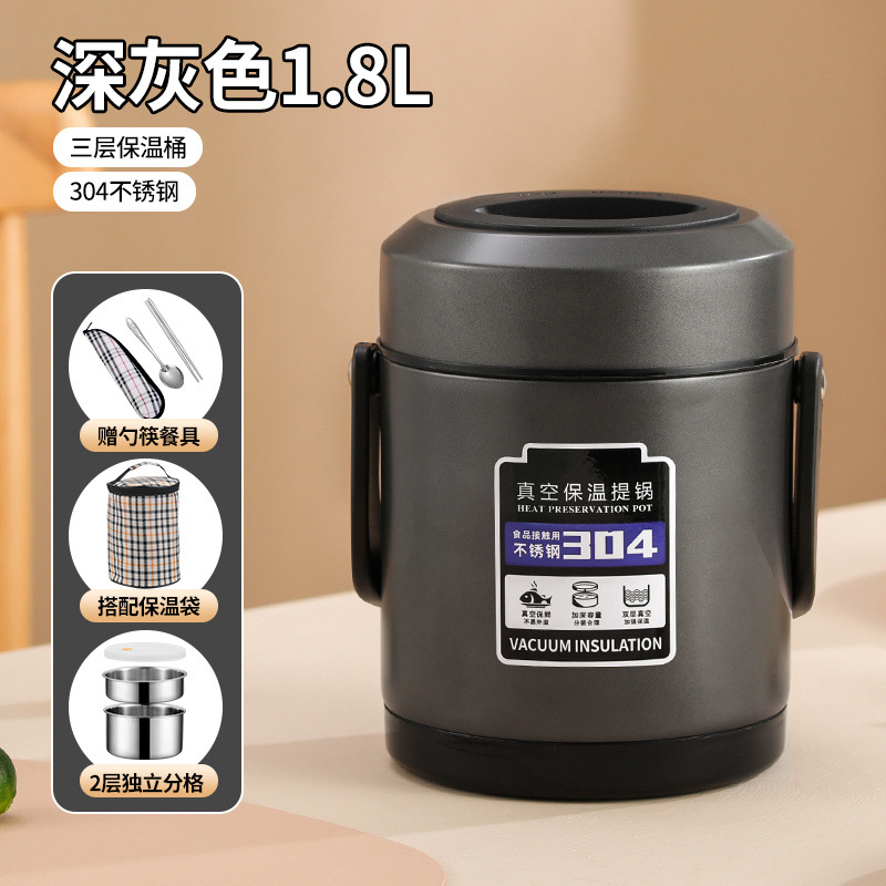 Ведро с трехслойной изоляцией 1,8л [высококачественный серый] + посуда + термосумка