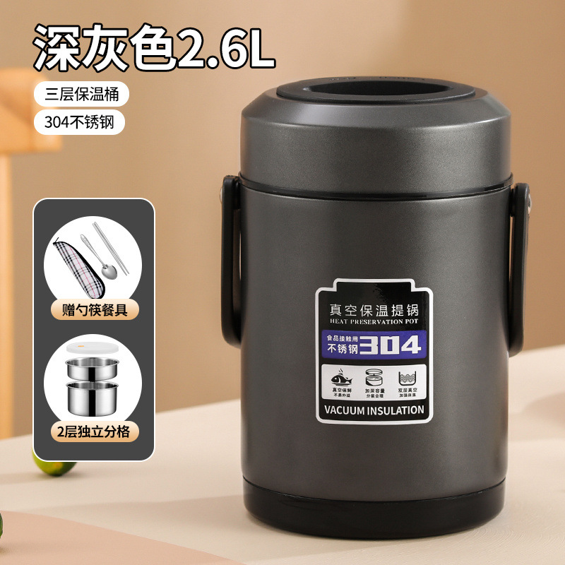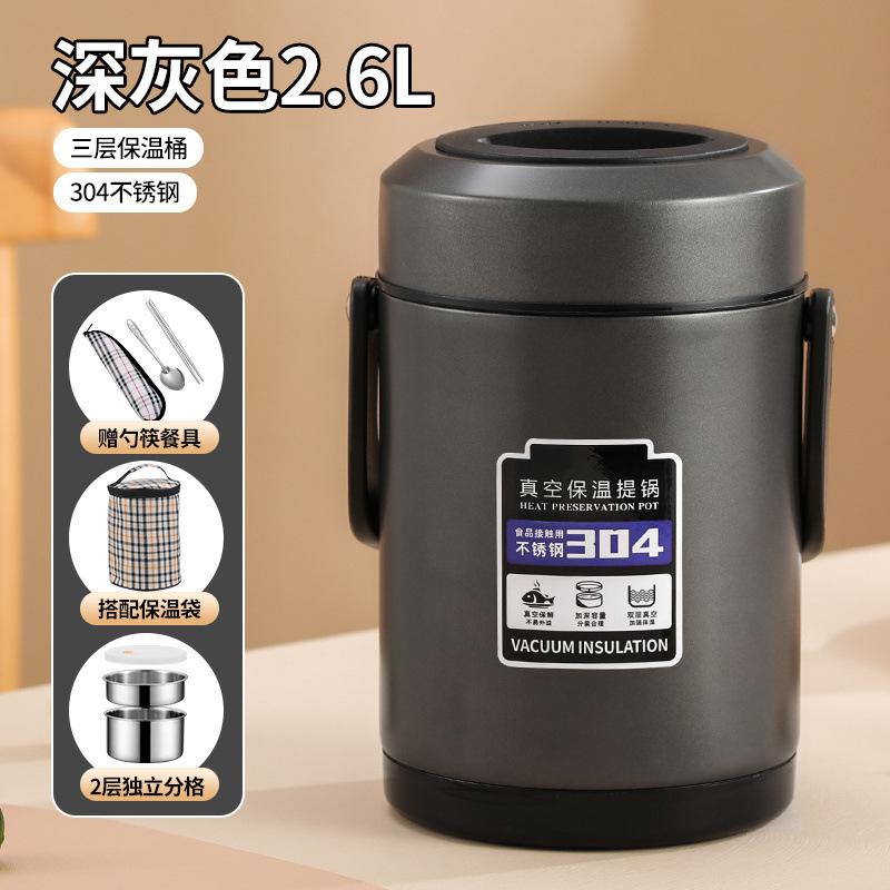 Ведро с трехслойной изоляцией 2,6л [высококачественный серый] + посуда + термосумка