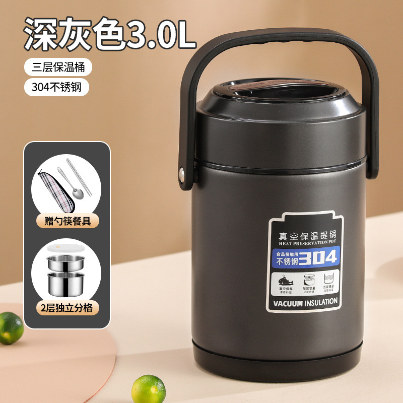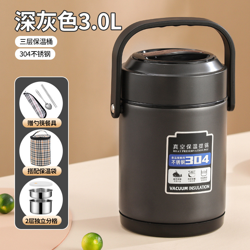 Ведро с трехслойной изоляцией 3,0л [высококачественный серый] + посуда + термосумка