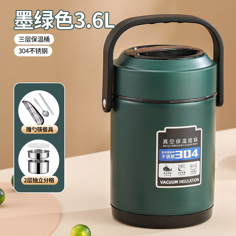 Ведро трехслойное изолированное 3,6л [кардамон зеленый] + посуда + изолированный пакет