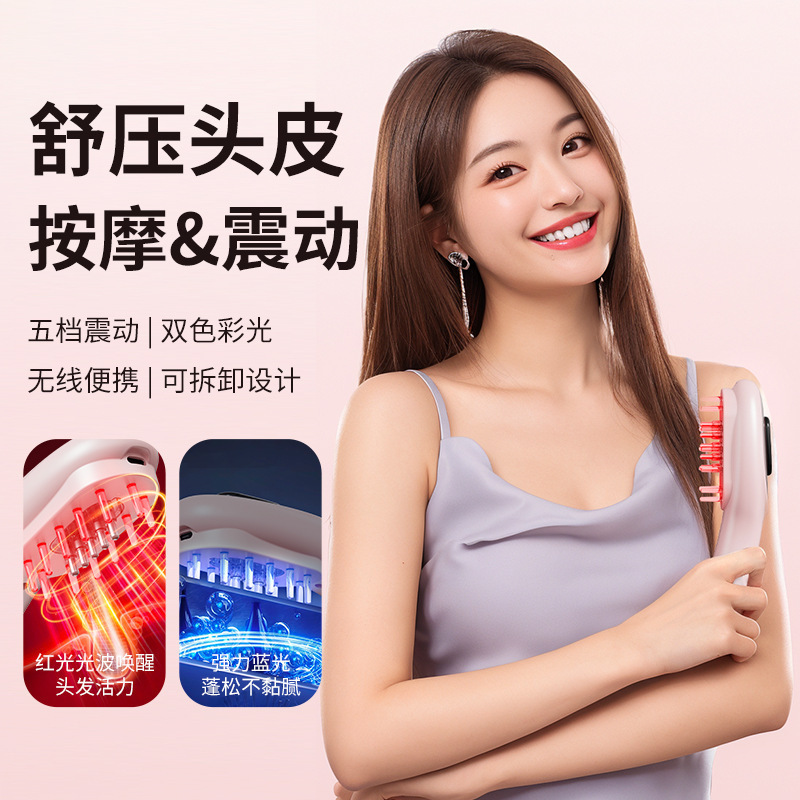 Скальп Smart Массажная расческа Красный свет Уход за головой Пушистая расческа для волос