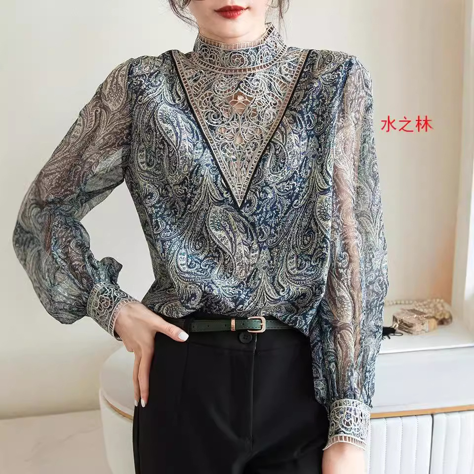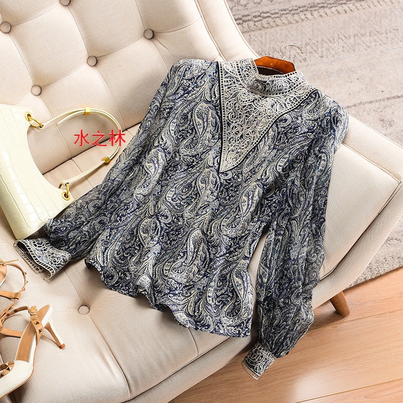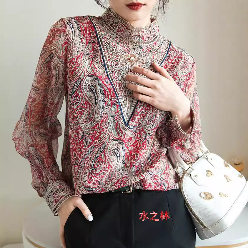 Главная страница > Красная рубашка из искусственного шелка, Женская Весенняя Новая мода, 2023, в западном стиле, с рукавом-фонариком, тяжелый Шелковый топ с вышивкой тутового дерева