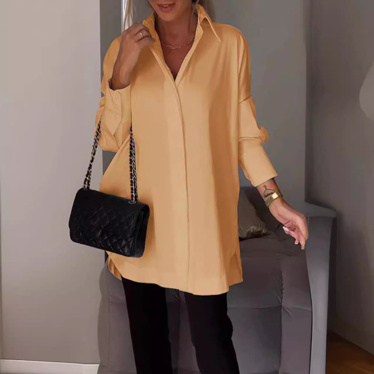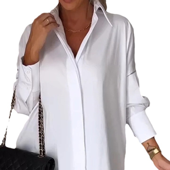 Главная страница > Европейская и американская трансграничная свободная рубашка высокого уровня многоцветная универсальная минималистская рубашка с длинными рукавами большой размер сплошной повседневная женская рубашка