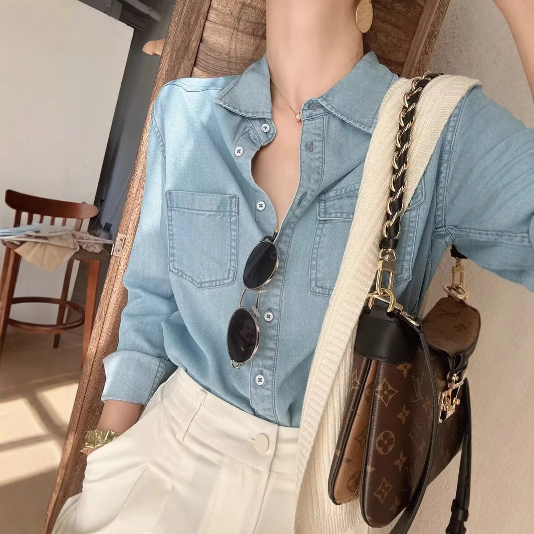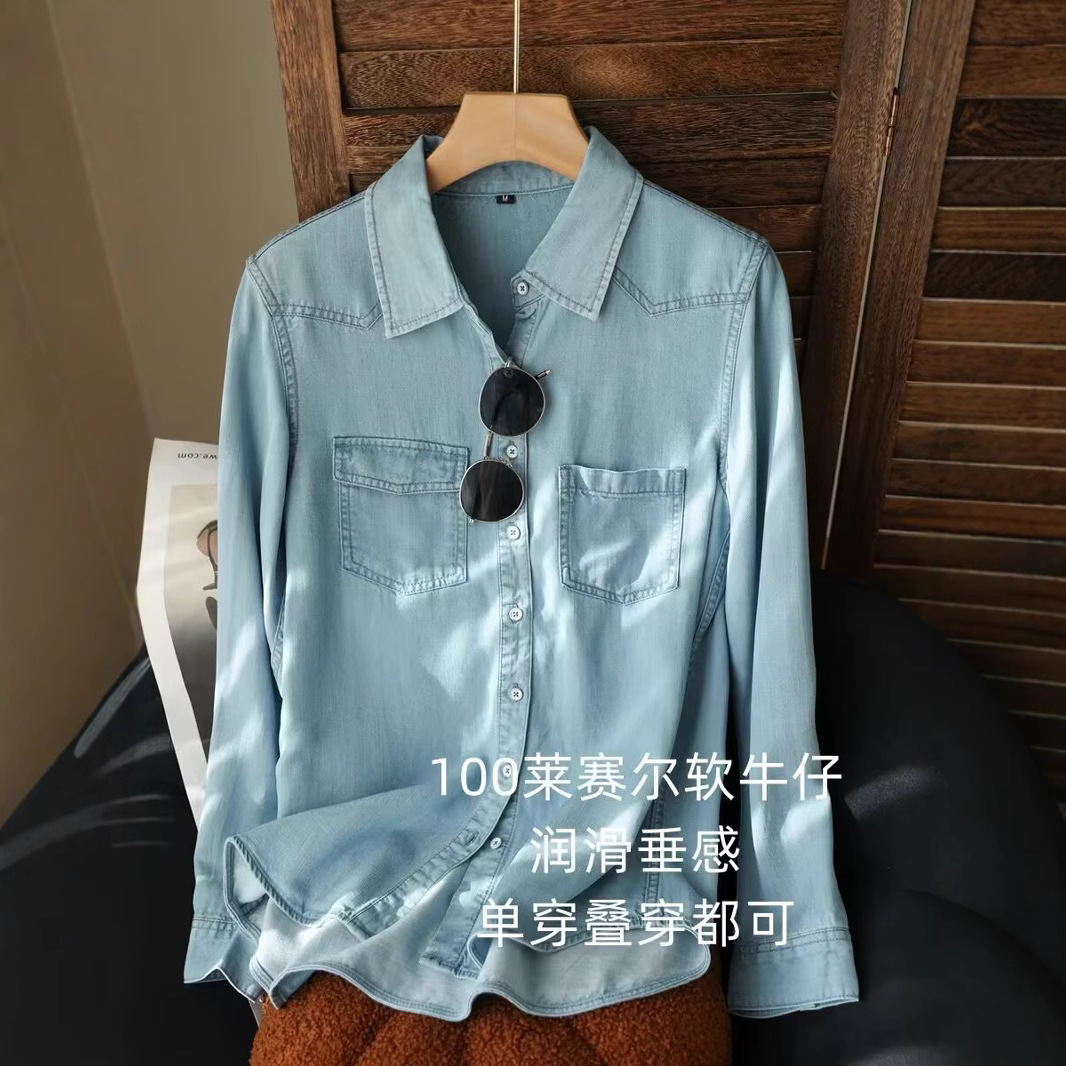 Главная страница > Ранняя осень мягкая и гладкая джинсовая рубашка Tsian может быть сложена на свободном тонком лацкане с длинными рукавами рубашка для женщин