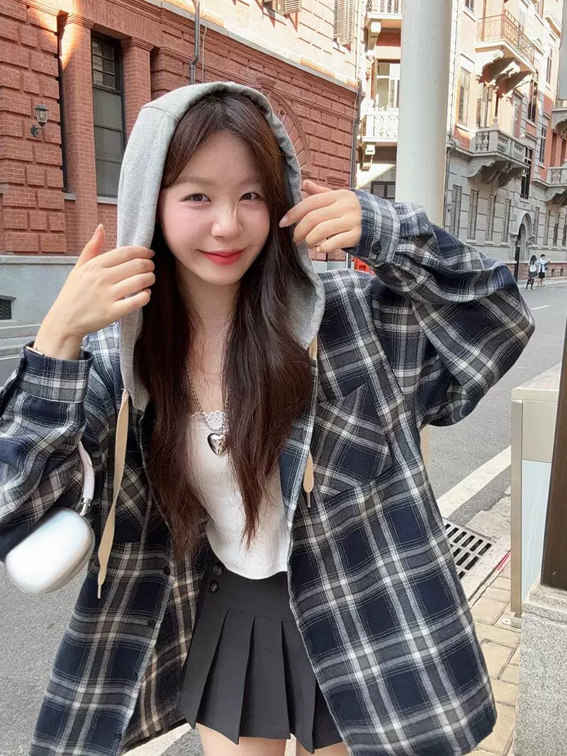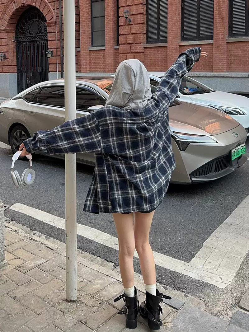 Главная страница > Американская ретро с капюшоном клетчатая рубашка женская новая новая ранняя осень свободная ленивая маленькая рубашка