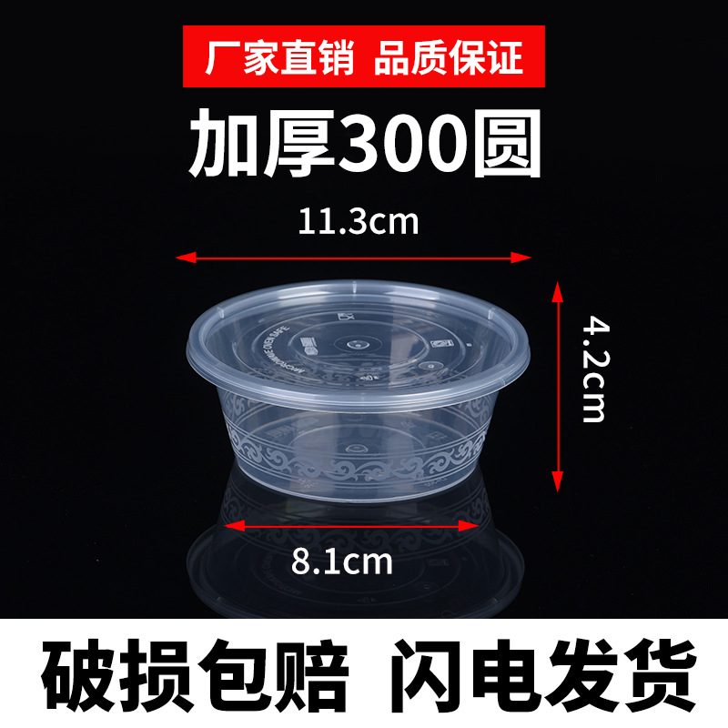 300 прозрачных круглых мисок в коробке (450 комплектов с утолщенной крышкой)