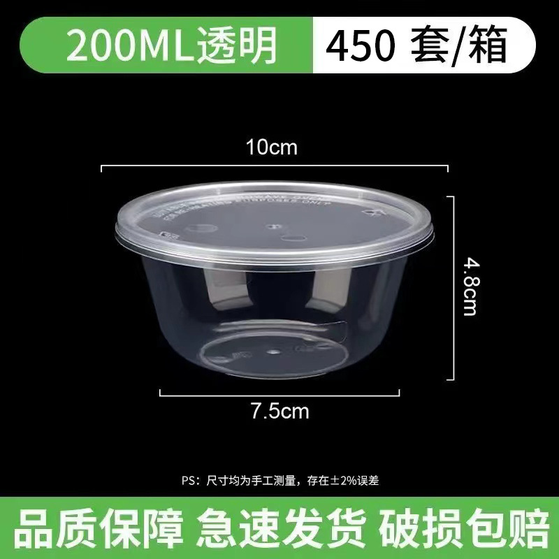 200 прозрачных круглых мисок в коробке (450 комплектов, утолщенных с крышкой)