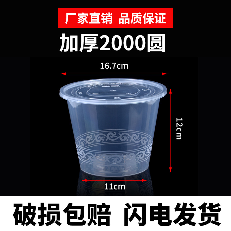 2000 прозрачная круглая миска с рисунком (50 комплектов, утолщенная с крышкой)