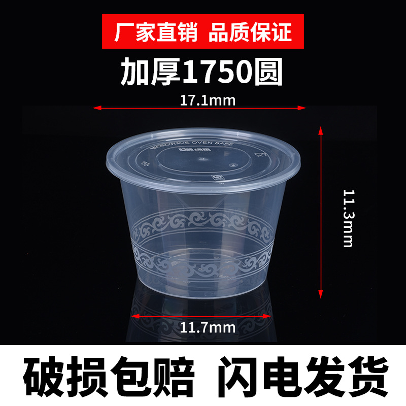 1750 прозрачная круглая миска с рисунком (50 комплектов, утолщенная с крышкой)