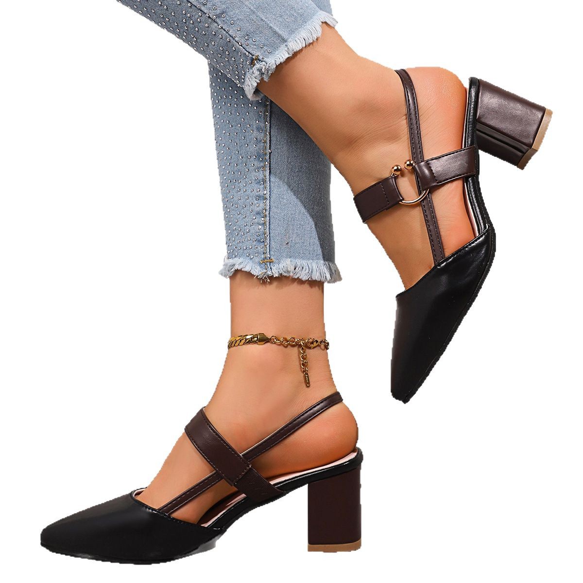 Главная страница > Весенне-летние женские туфли-мюли 2025 года с заострённым носком и массивным каблуком, босоножки на среднем каблуке с ремешком на щиколотке, ажурные женские сандалии.