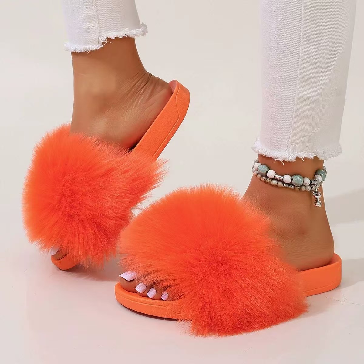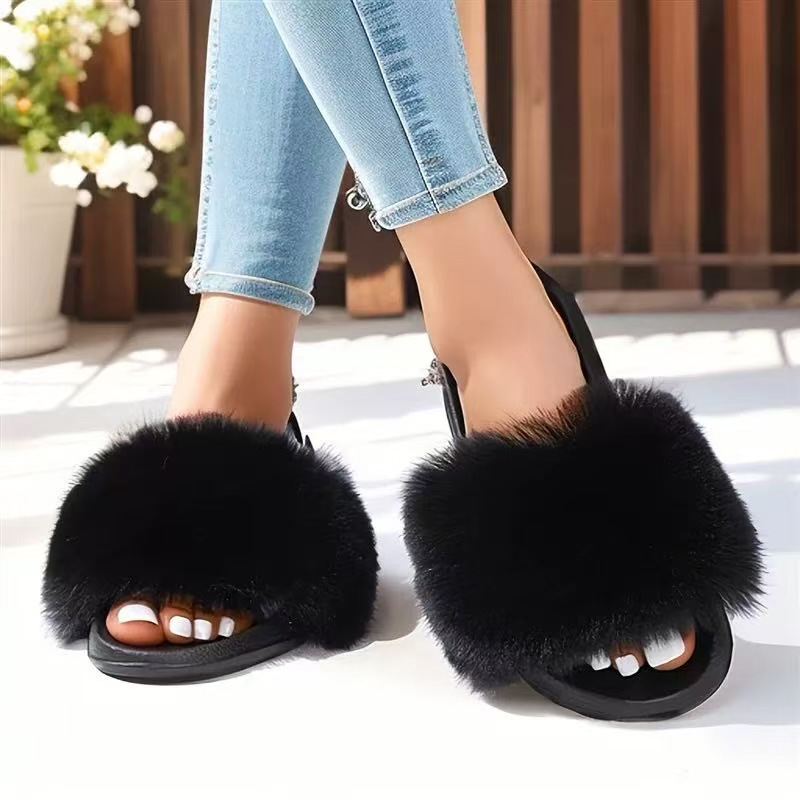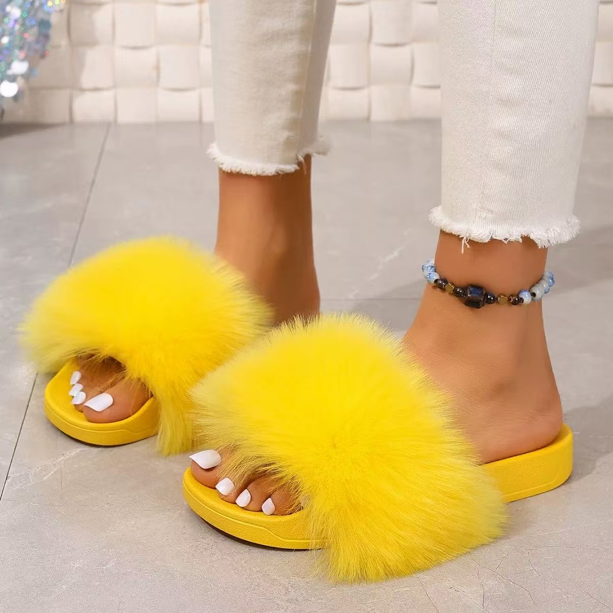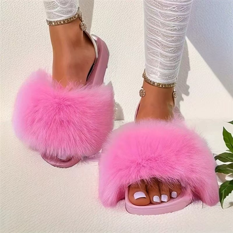 Главная страница > Модные женские меховые тапочки для шопинга, для дома и улицы, сандалии на толстой подошве, однотонные слипоны, плюшевые тапочки от производителя.