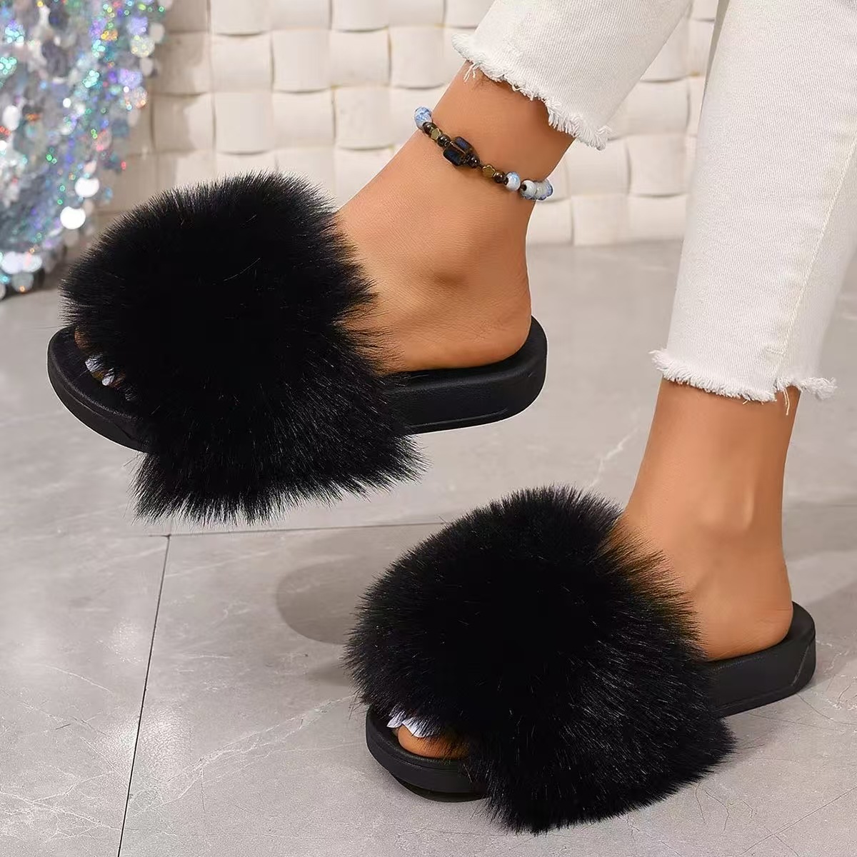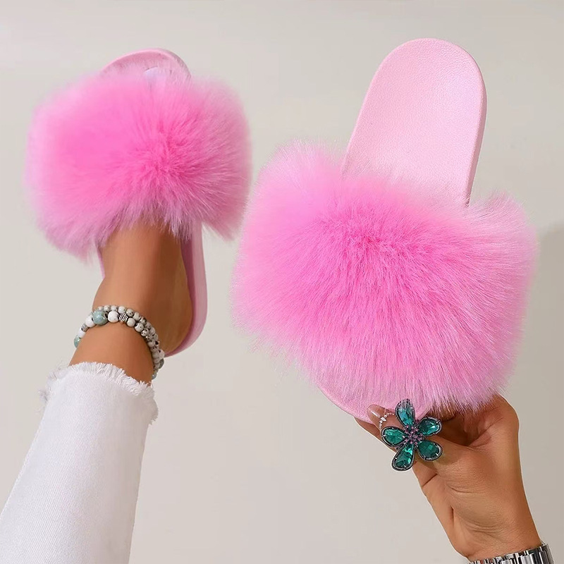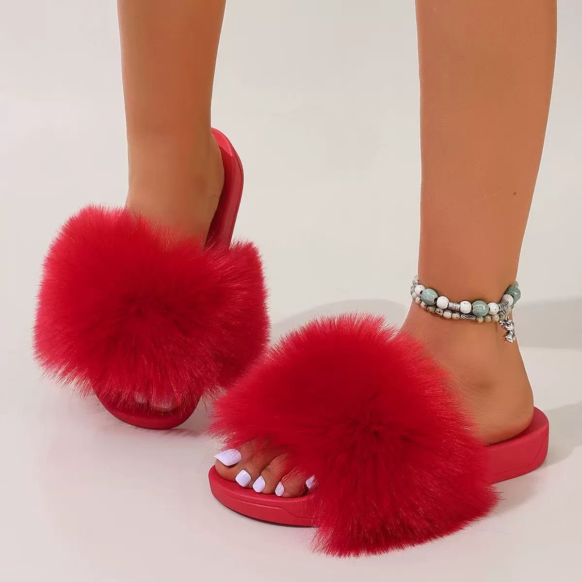 Главная страница > Модные женские меховые тапочки для шопинга, для дома и улицы, сандалии на толстой подошве, однотонные слипоны, плюшевые тапочки от производителя.