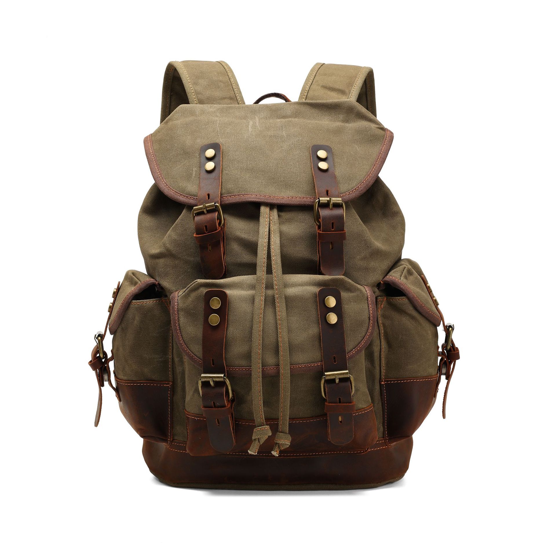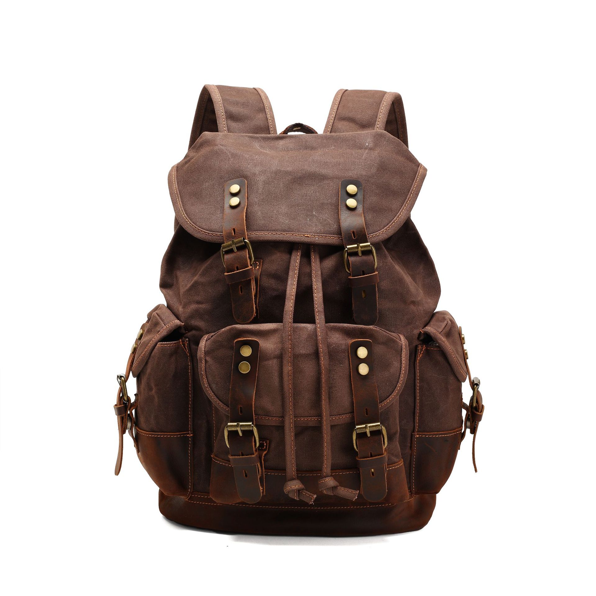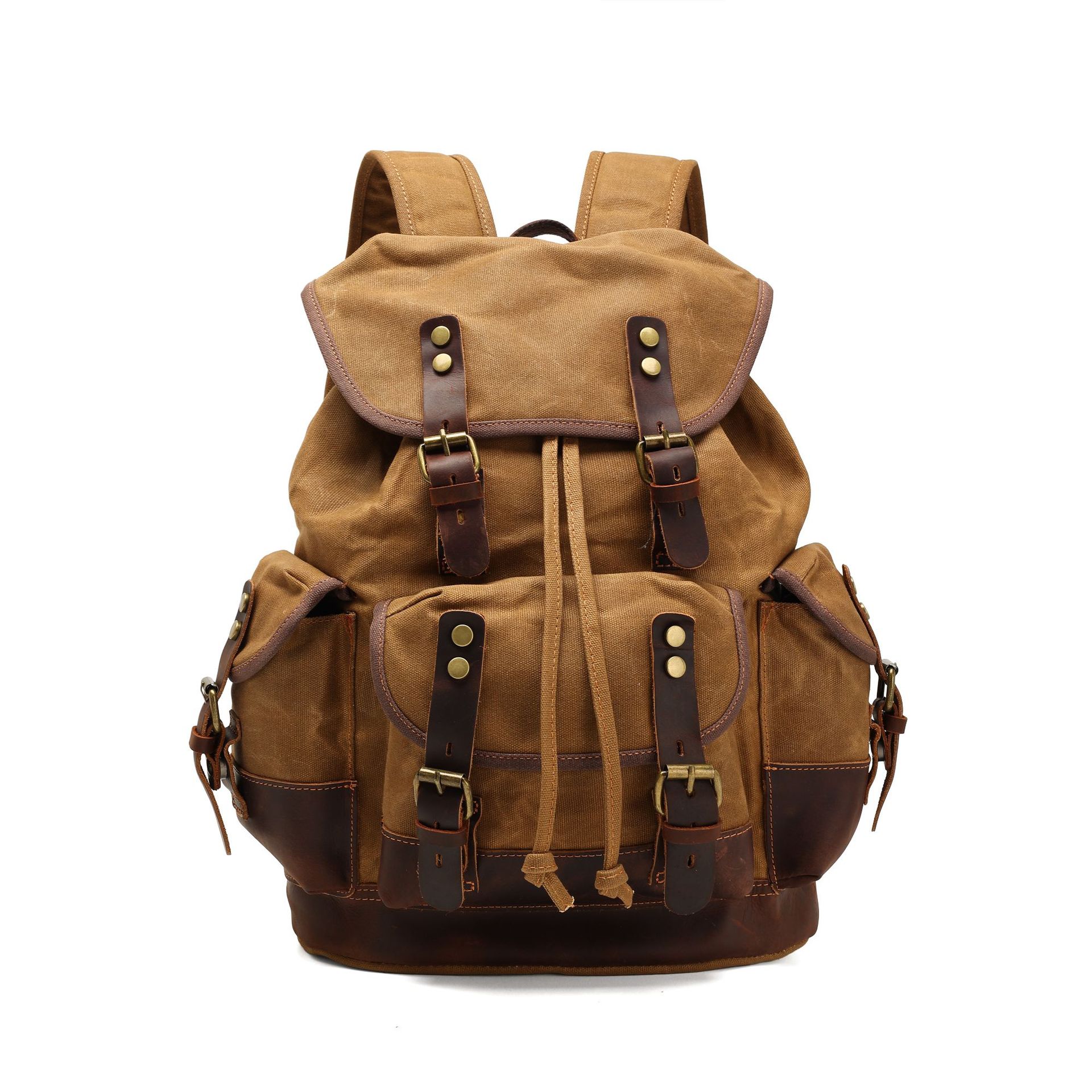 Главная страница > Европейская и американская ретро-сумка из водонепроницаемого вощеного холста, походный рюкзак из холста, водонепроницаемый рюкзак из холста с множеством карманов