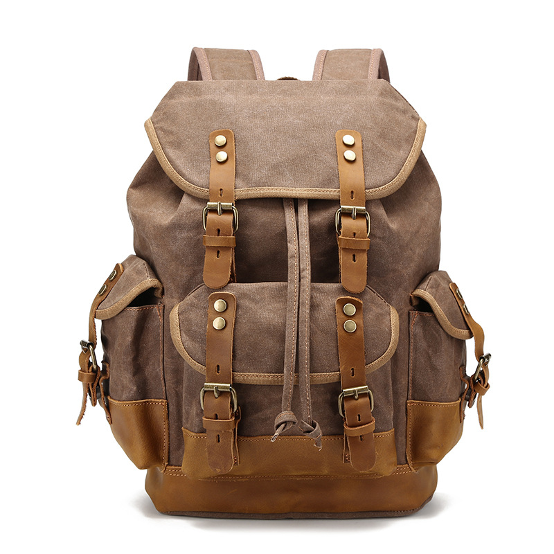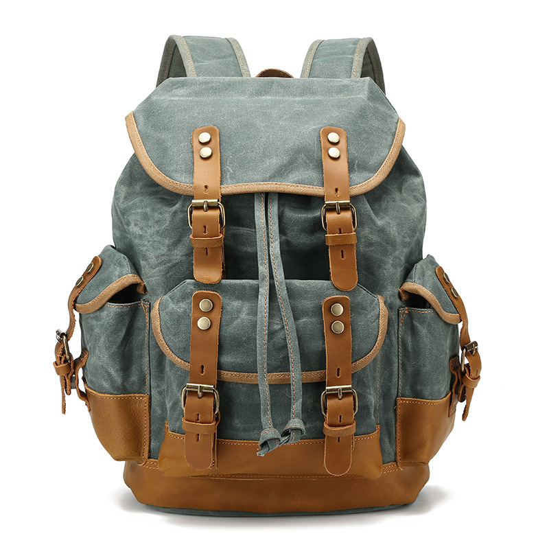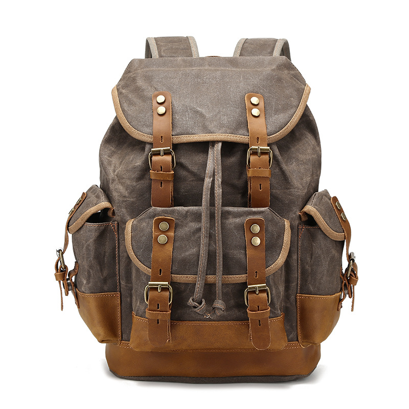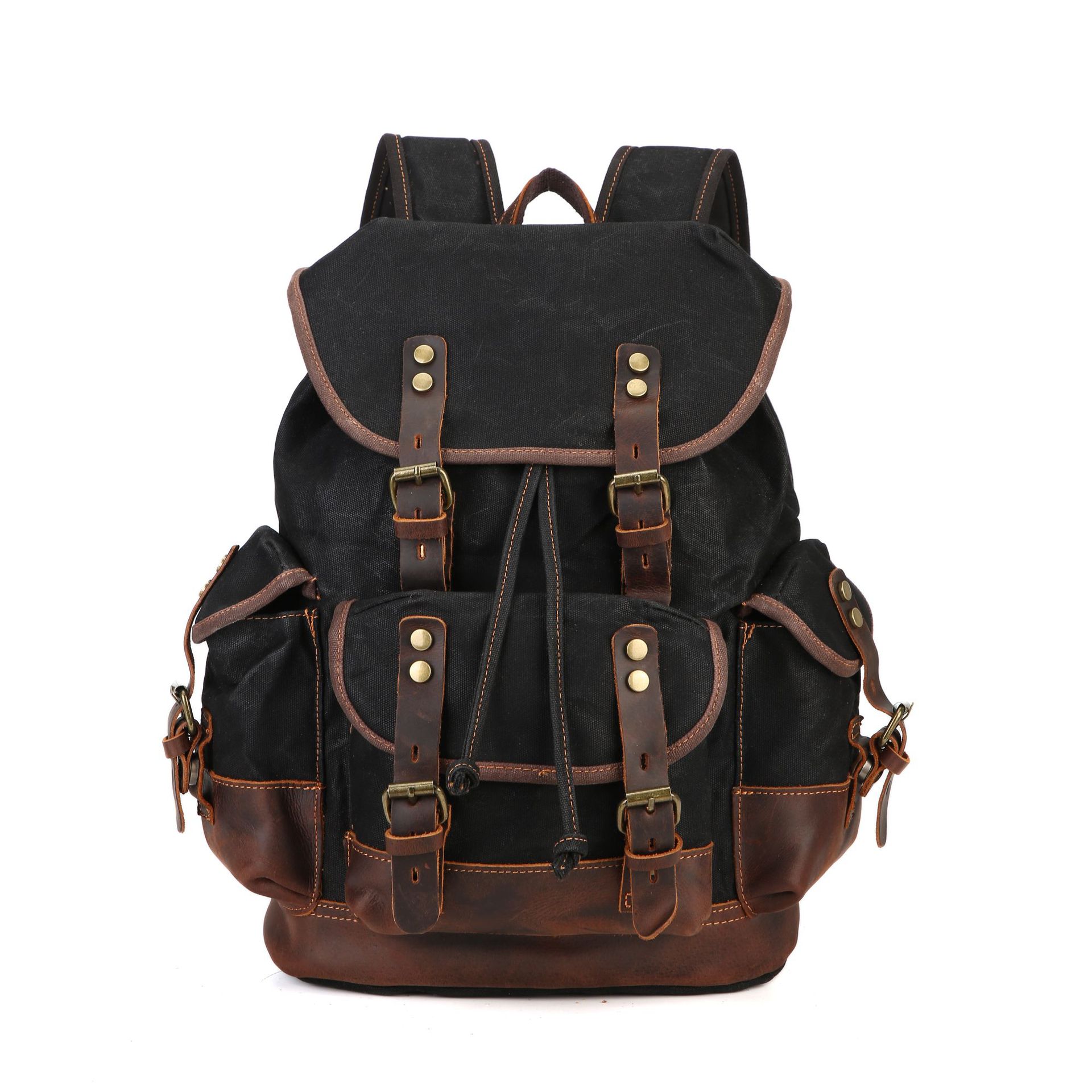 Главная страница > Европейская и американская ретро-сумка из водонепроницаемого вощеного холста, походный рюкзак из холста, водонепроницаемый рюкзак из холста с множеством карманов