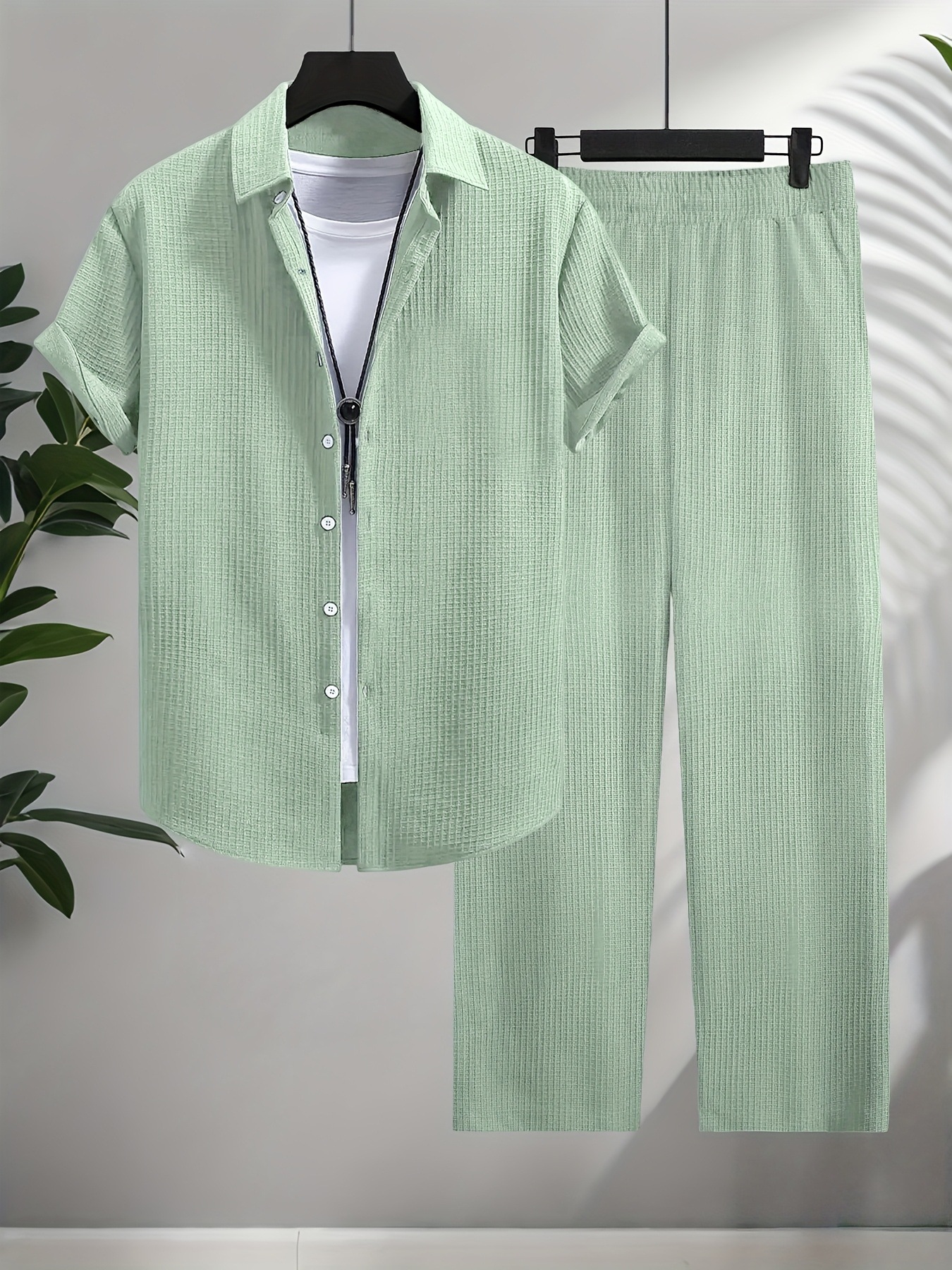 Главная страница > Новый летний мужской повседневный модный комплект из жаккардовой рубашки с коротким рукавом и брюк для трансграничной торговли Amazon 2025